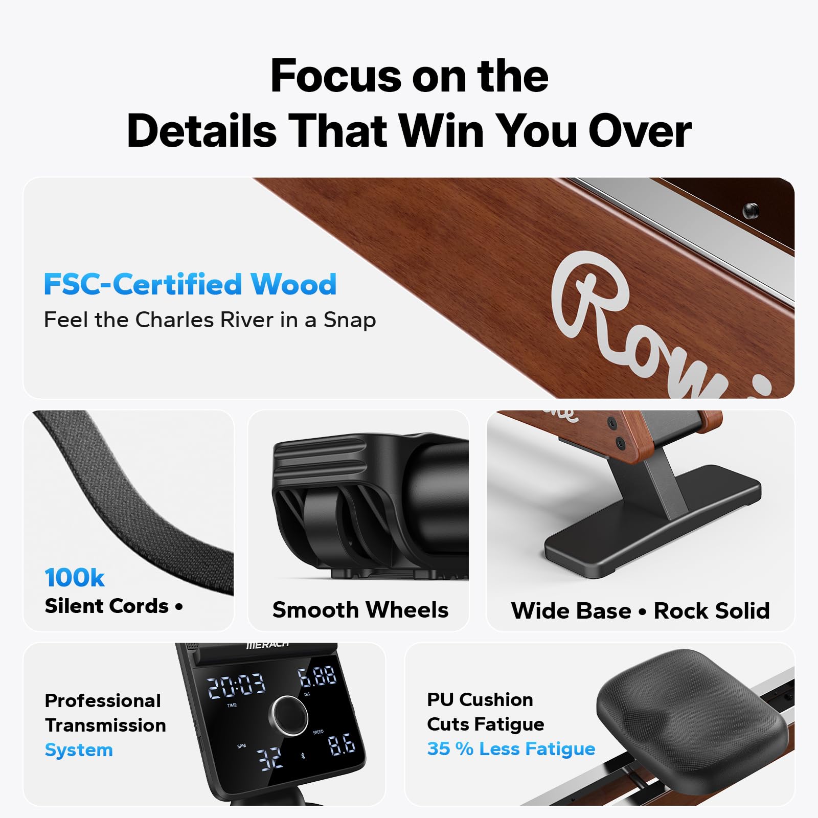 MERACH Pro-Grade Rowing Machines for Home, Smart Magnetic Rowing Machine with Self-Generation, Double Resistance and 400 LBS MAX Load, Wooden Tracks for Silent Sliding, MERACH App 1000+ Course & Games