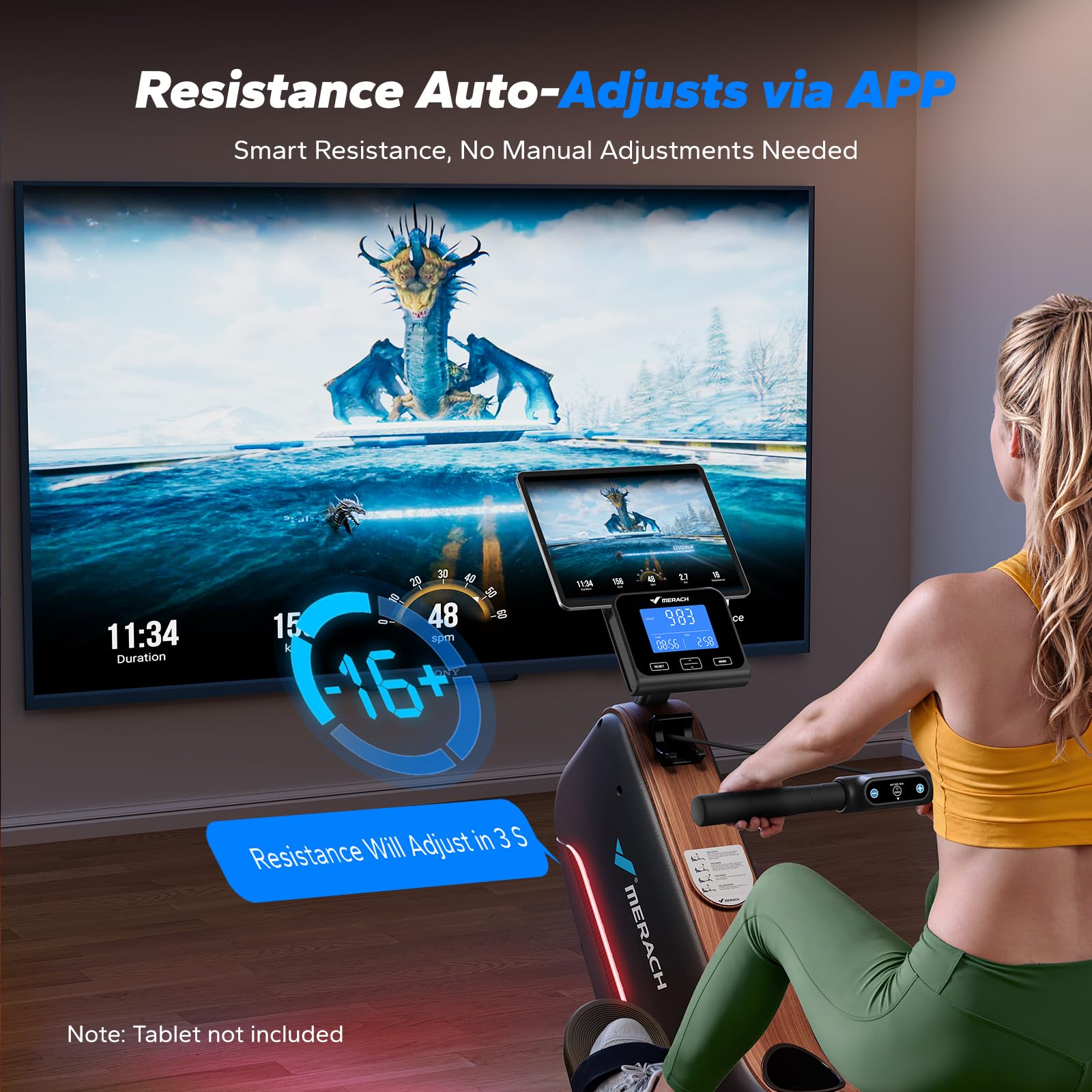 MERACH Rowing Machines for Home, Powerful Electromagnetic Row Machine with 51.2" Extended Rail, 16-Level Handle Resistance Adjustment Rower, 350 LBS Load Capacity, Ergonomic Comfort Seat, Easy Storage
