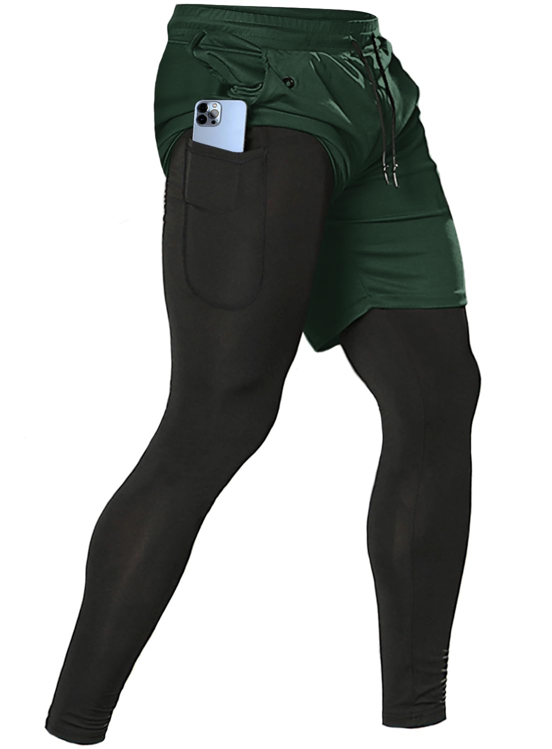 Aolesy Men's 2 in 1 Running Pants, Gym Workout Compression Pants for Men Training Athletic