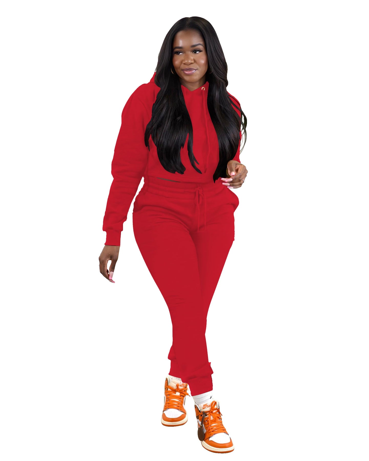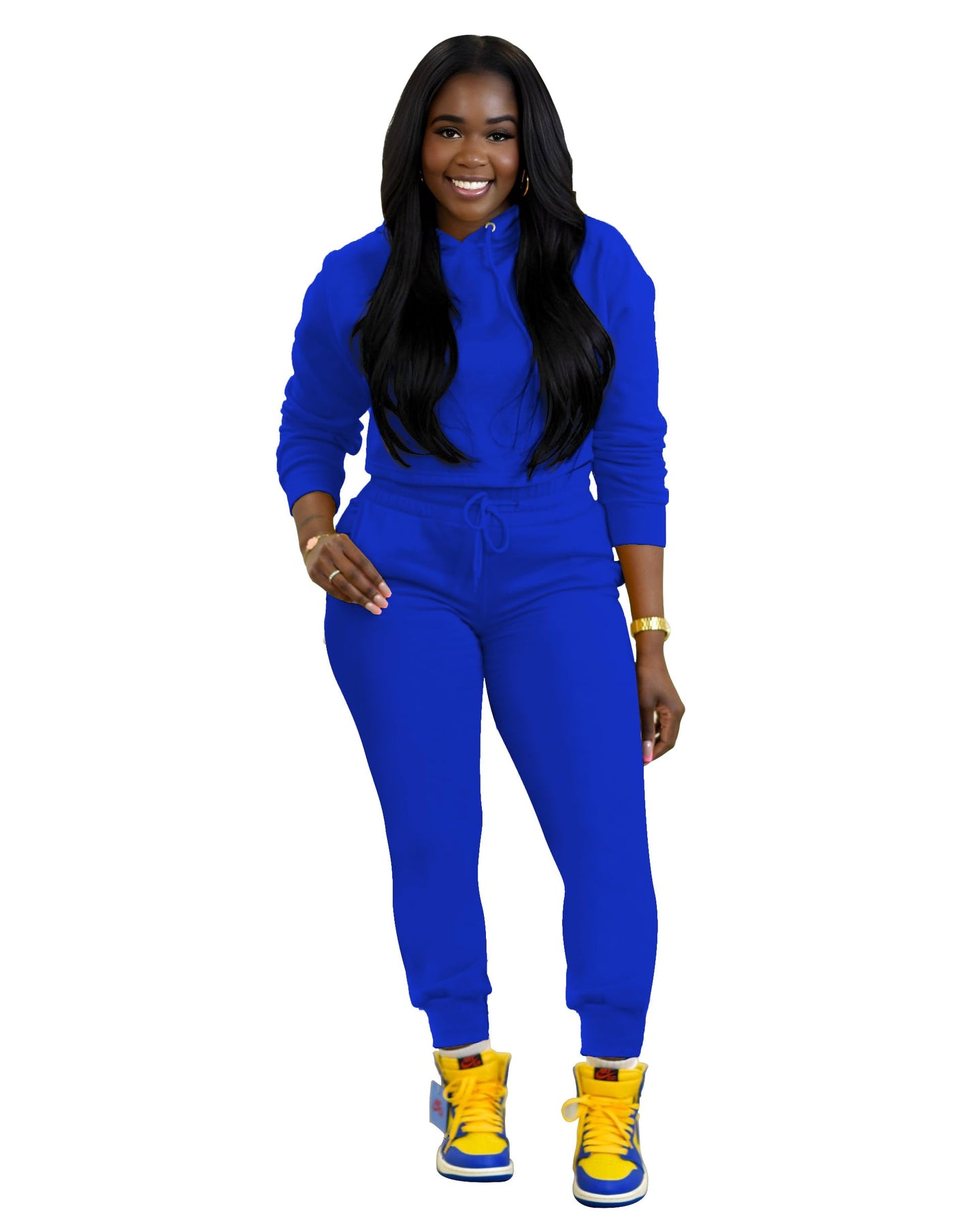 TOPSRANI Womens Two Piece Outfits Bodycon Tracksuit Sweatsuits Hoodie Solid Jogger Biker Workout Lounge Long Sleeve Pant Sets