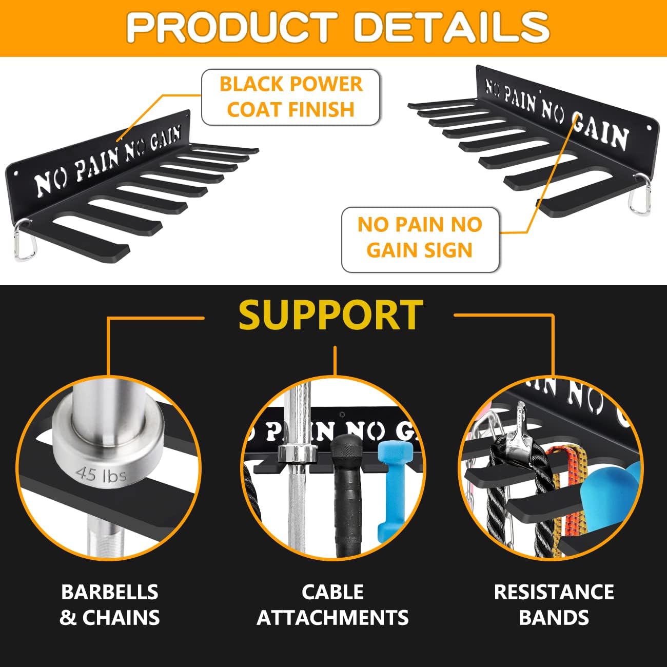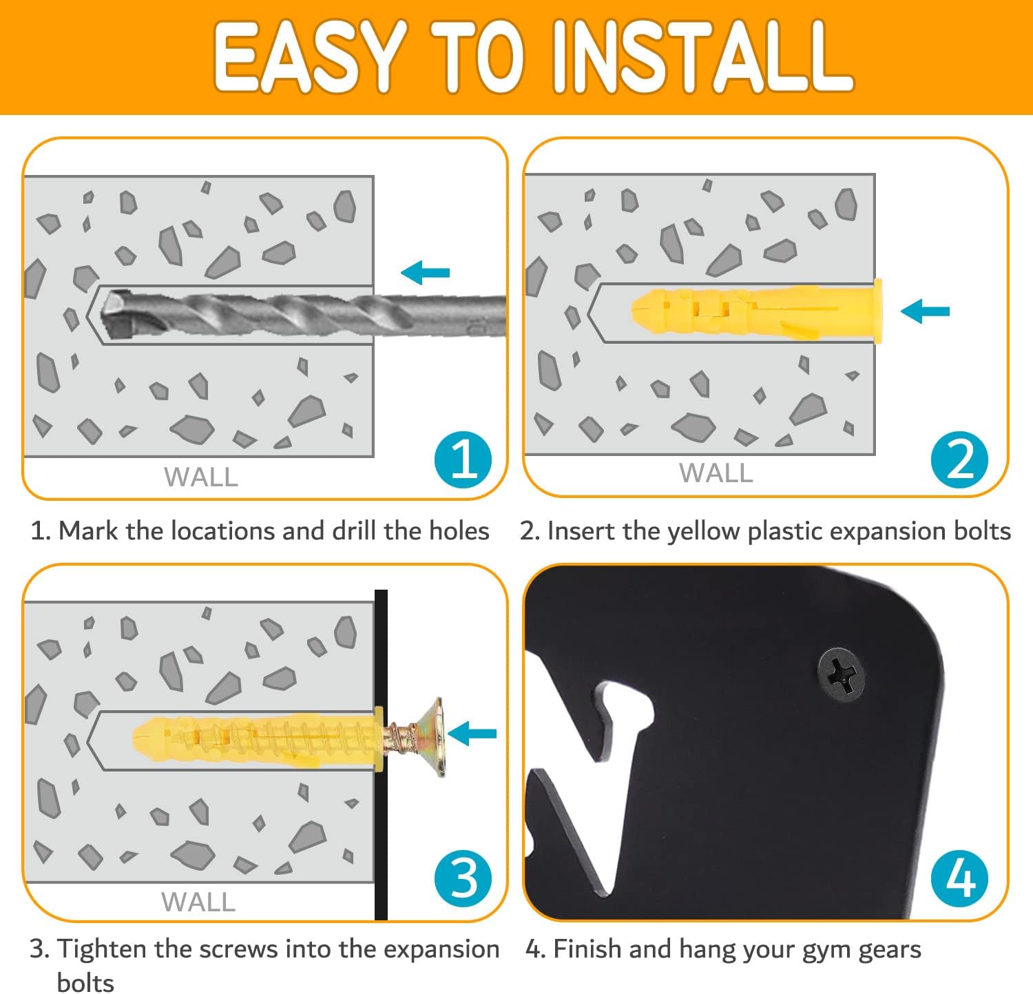 Gym Home Rack 8 Hook Heavy-Duty Wall-mounted Organizer Multi-Purpose Workout Gear Wall Hanger Storage for Resistance Bands Jump Ropes Lifting Belt Fitness Bands Barbells Carabiners Included