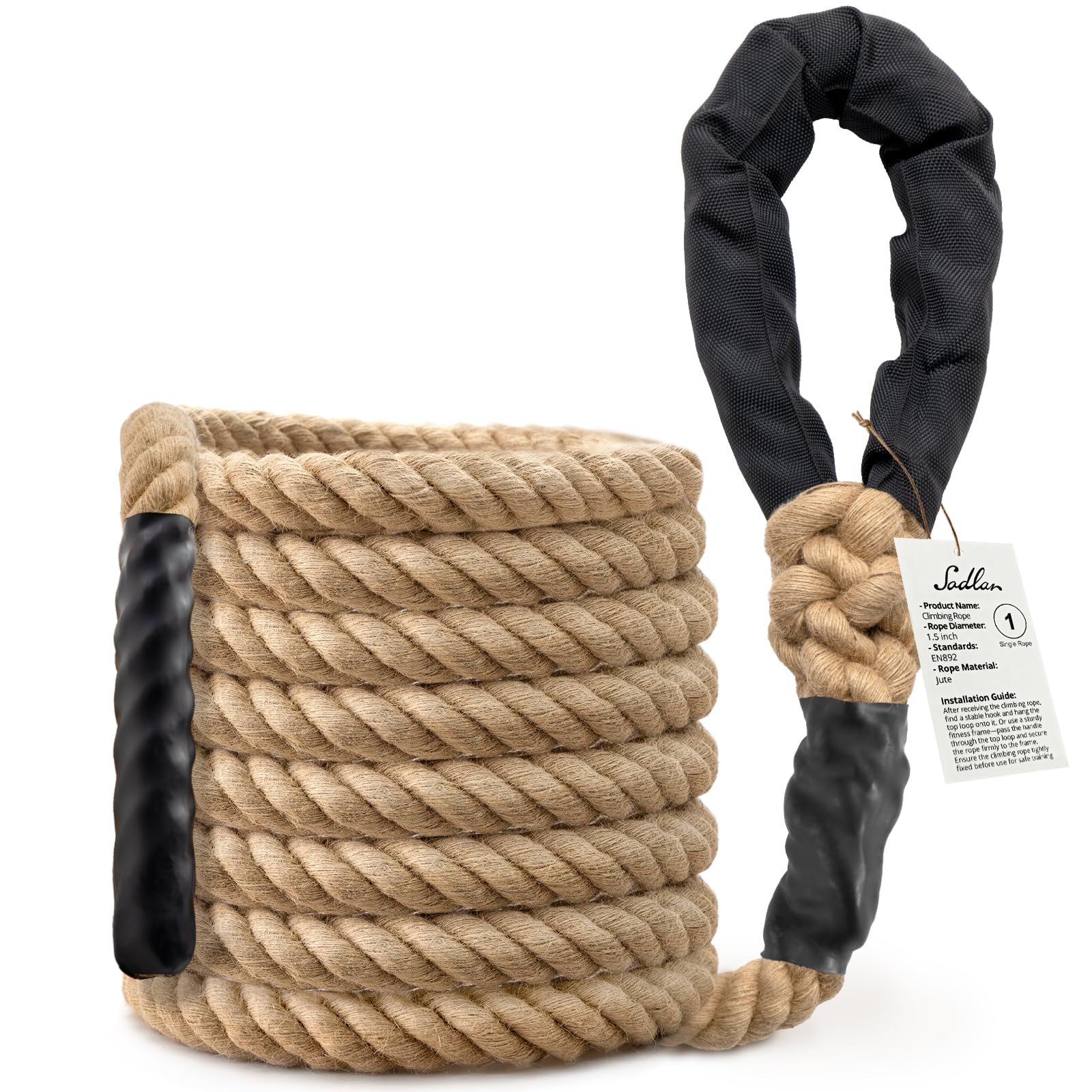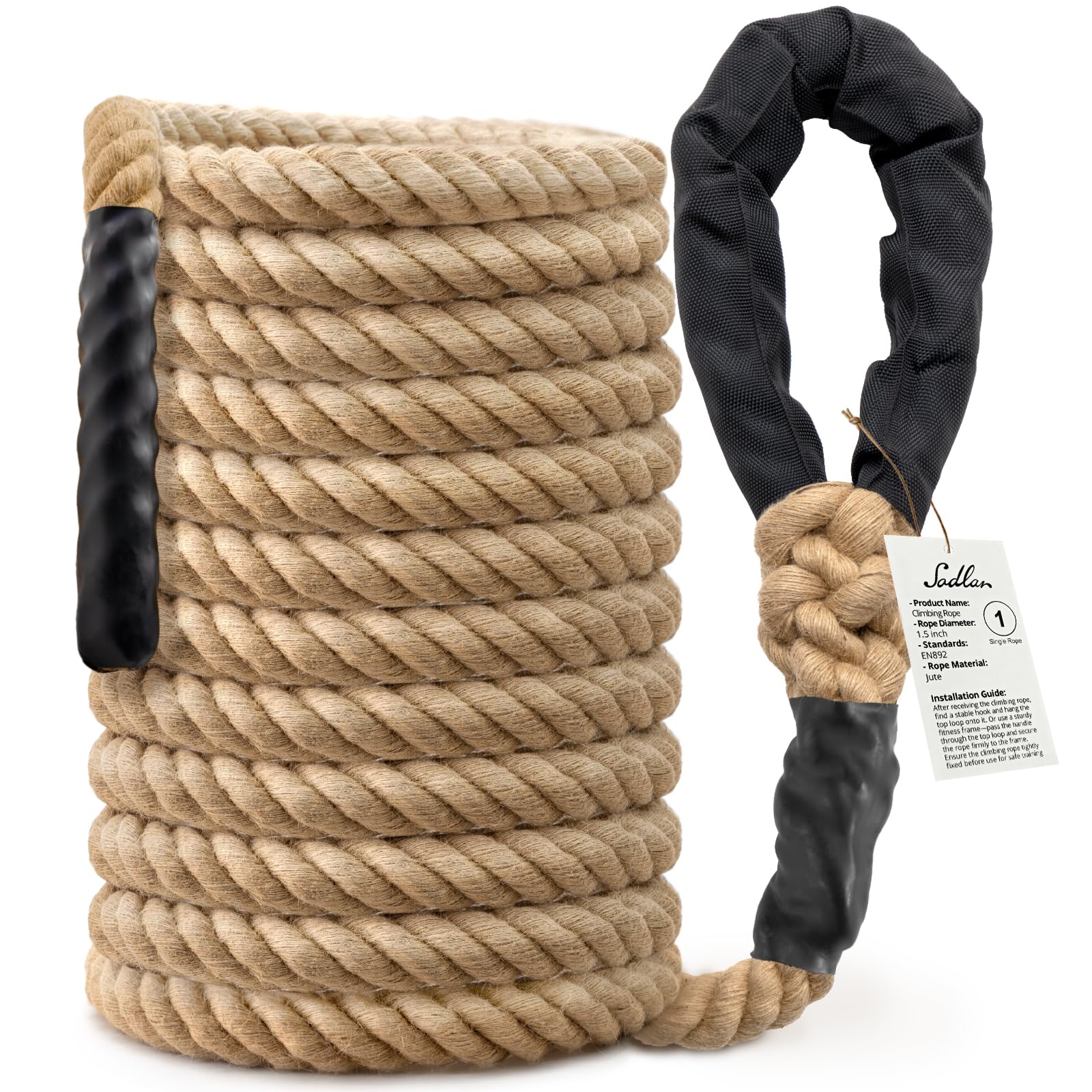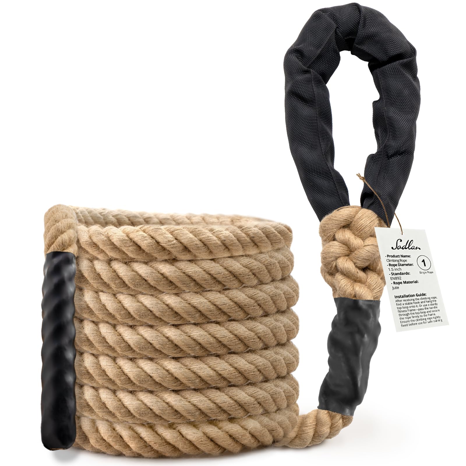Climbing Rope Gym Workout - 1.5 Inch Diameter 10FT 15FT 20FT 25FT 30FT 35FT Heavy Duty Jute Thick Ropes for Adults Strength Training Outdoor Tree Swing Indoor Home Fitness Exercise