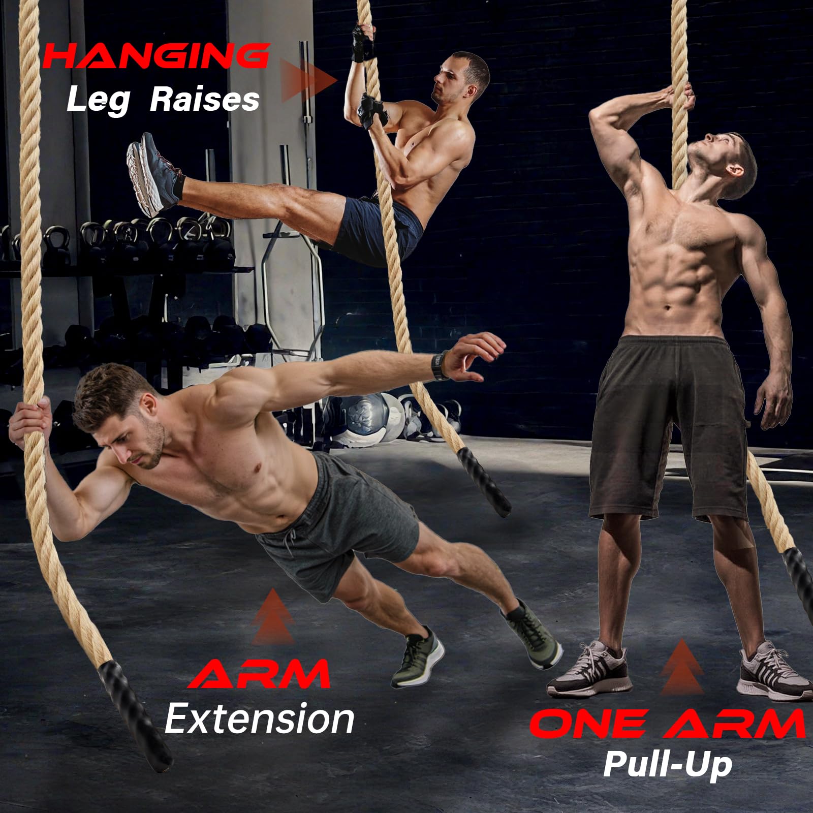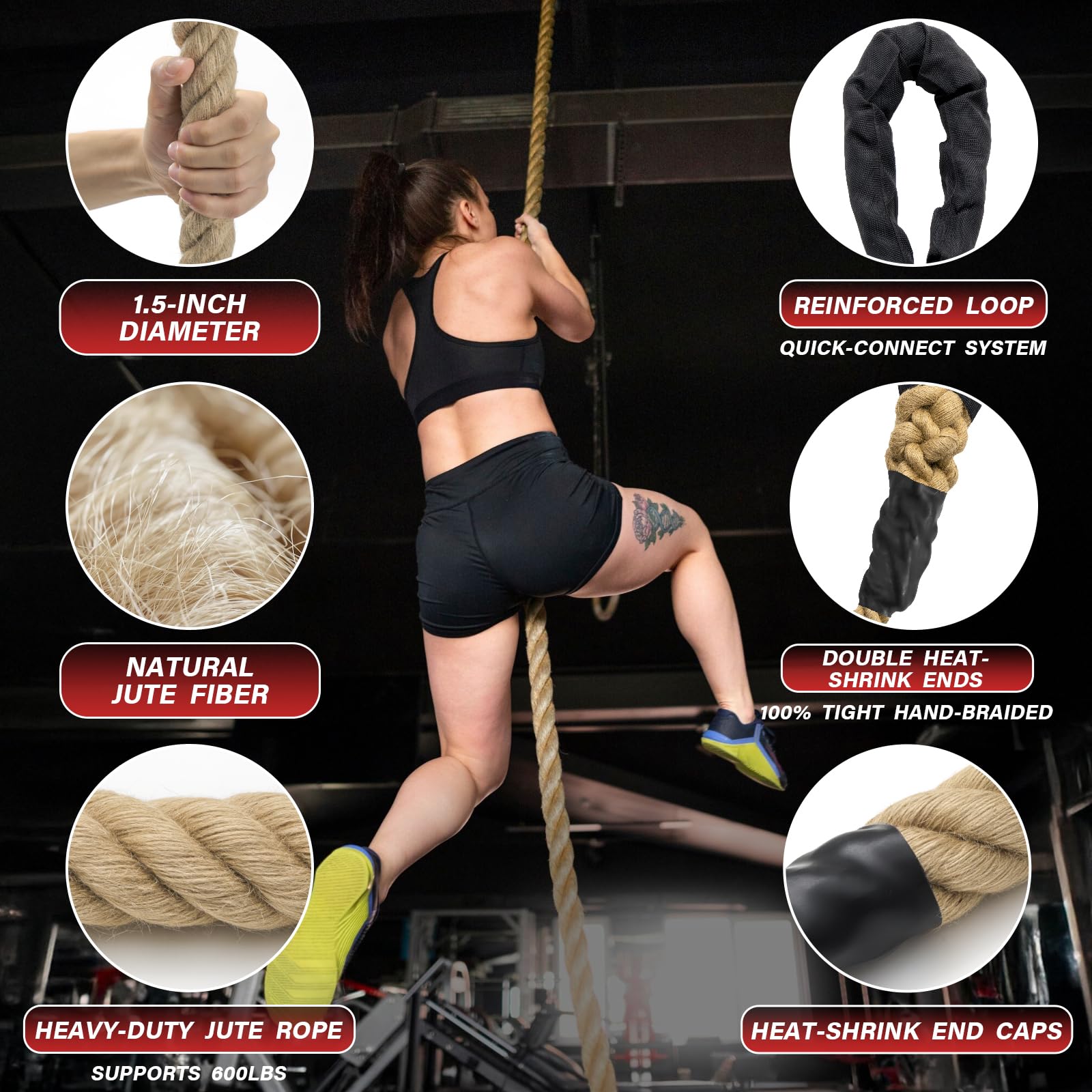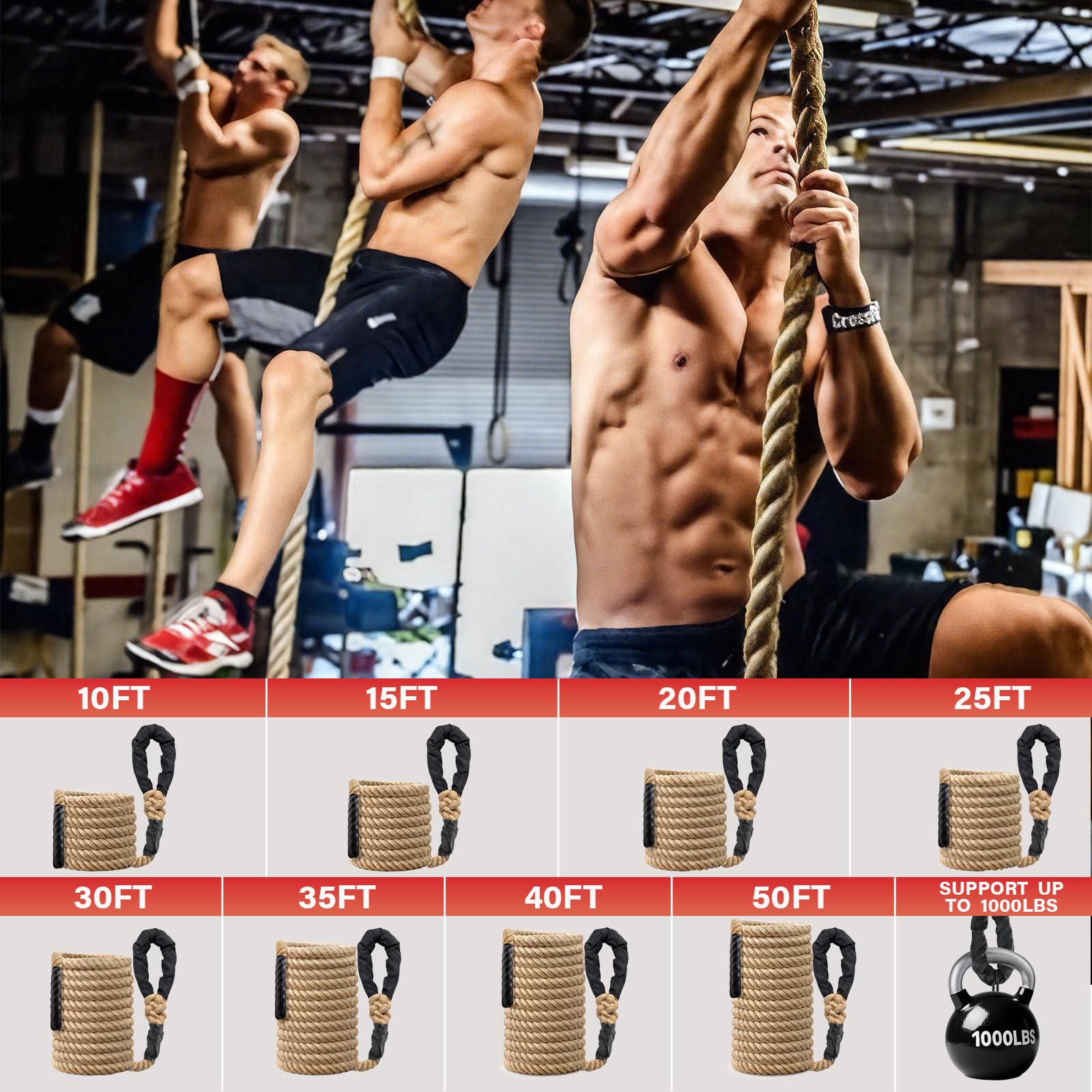 Climbing Rope Gym Workout - 1.5 Inch Diameter 10FT 15FT 20FT 25FT 30FT 35FT Heavy Duty Jute Thick Ropes for Adults Strength Training Outdoor Tree Swing Indoor Home Fitness Exercise