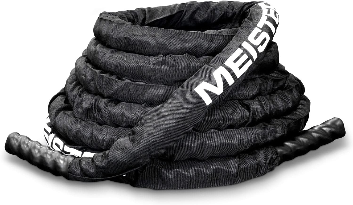 Meister Professional Sheathed Battle Rope for Strength & Conditioning Gym Workouts - 2.0" Diameter - Black
