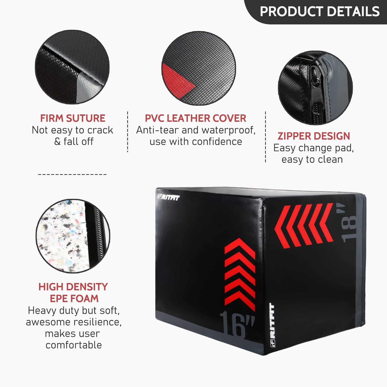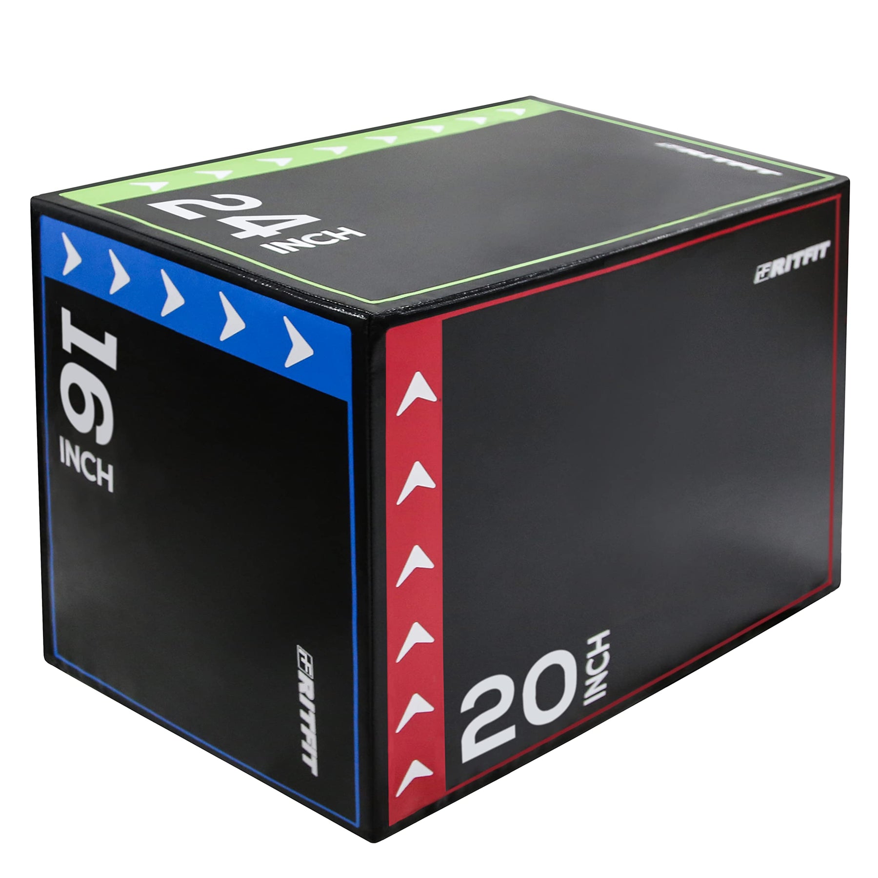 RitFit 3 in 1 Extra Firm Soft Plyo Box Foam Plyometric Box-30”x24”x20”-20"x18"x16" Heavy Duty High Density Foam Jumping Box 3 Sizes with PVC Cover,Platform for Home Gym Fitness, 440lb Weight Capacity