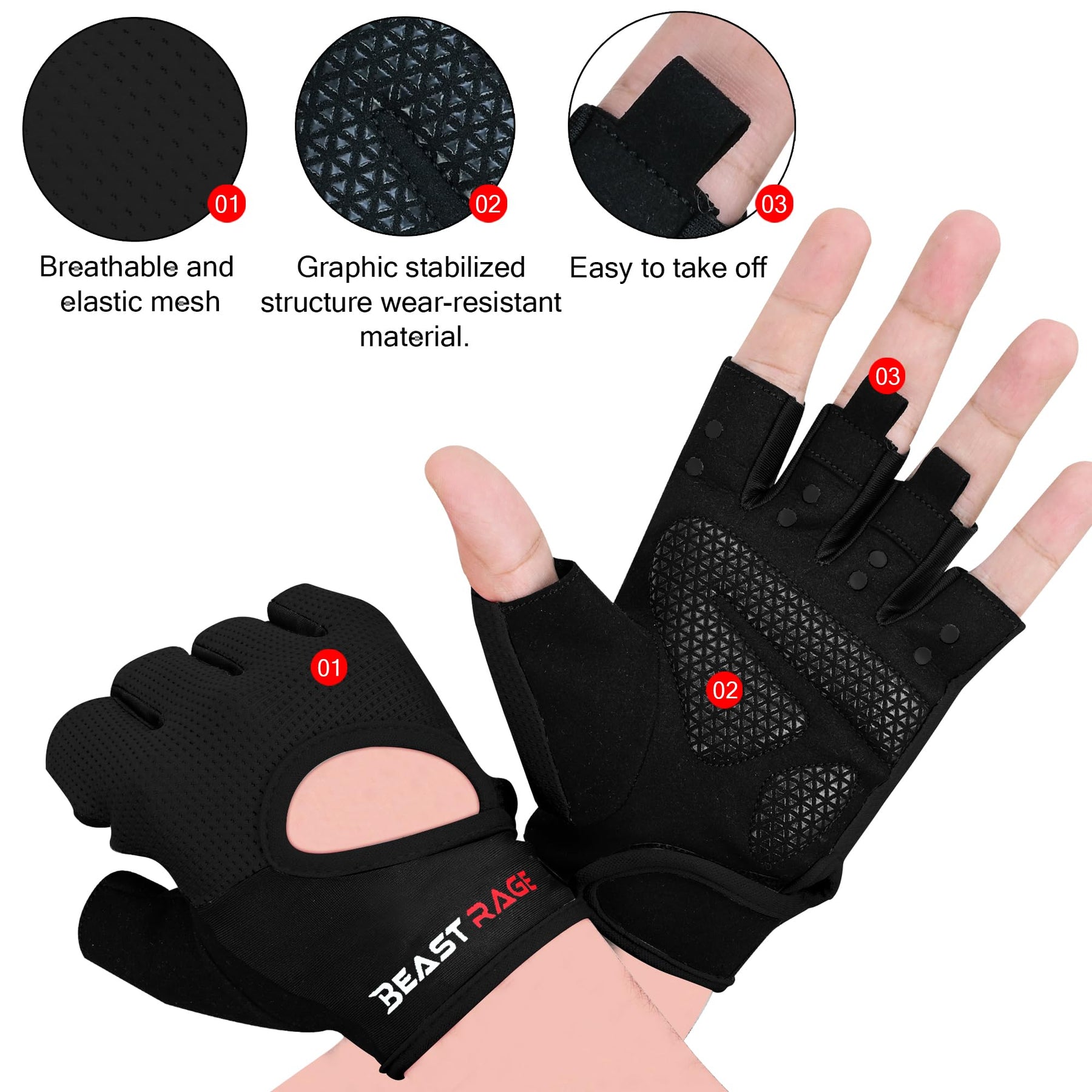 BEAST RAGE Workout Gloves for Men & Women - Fingerless Gym Gloves with Palm Protection, Breathable & Lightweight for Weightlifting, Cycling & Pull Up