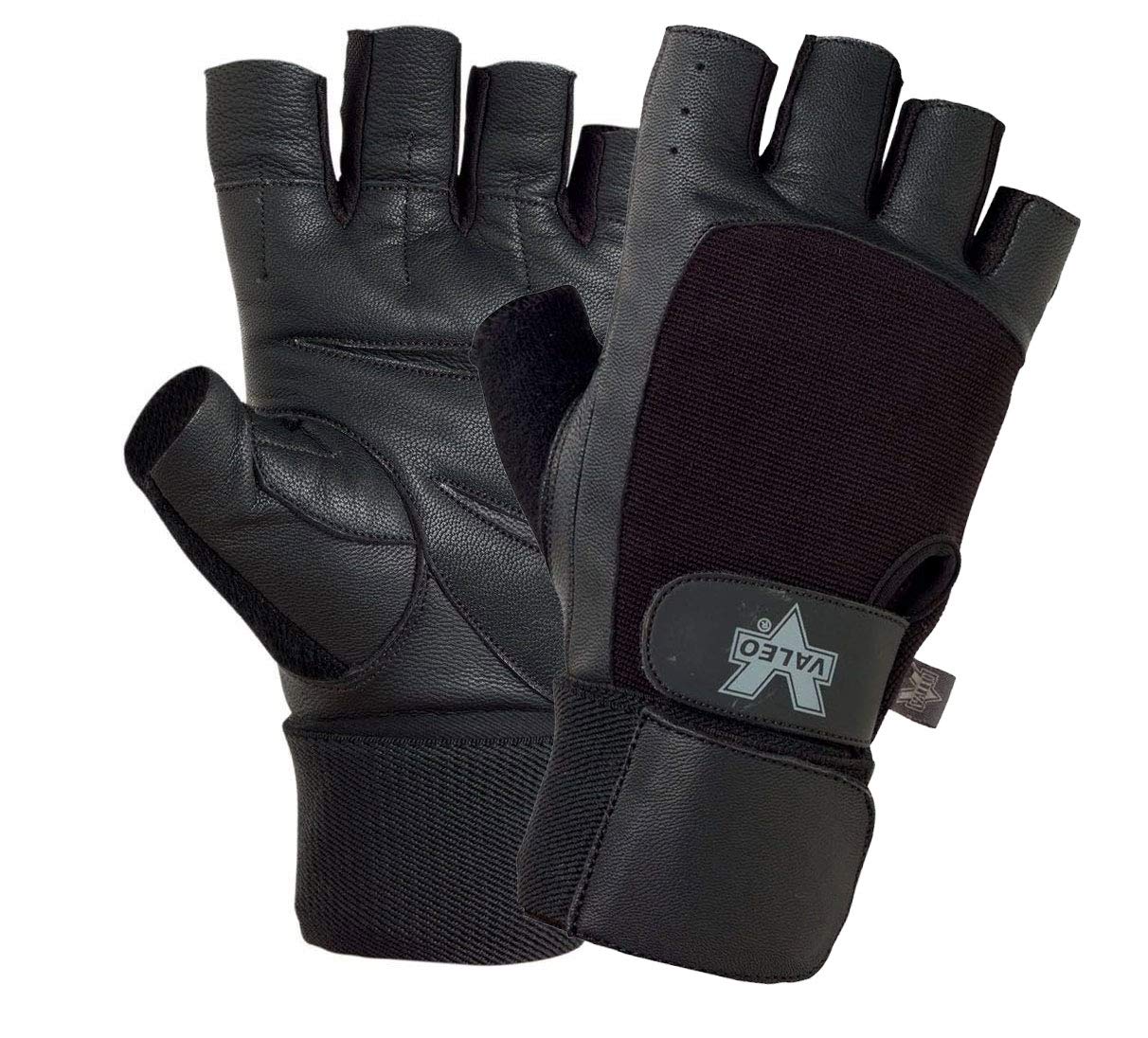 Valeo Competition Wrist Wrap Lifting Gloves with Durable Leather Construction, Reinforced Stitching, and Double Leather Padded Palms