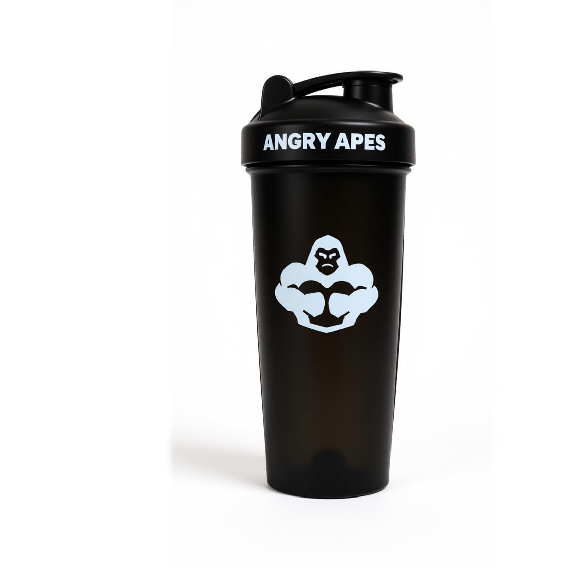 Angry Apes 28 oz Shaker Bottle – BPA-Free Tritan, Leak-Proof Flip Cap, Aluminum Mixer Ball & Measurement Scale – White Variant with Black Logo (white)