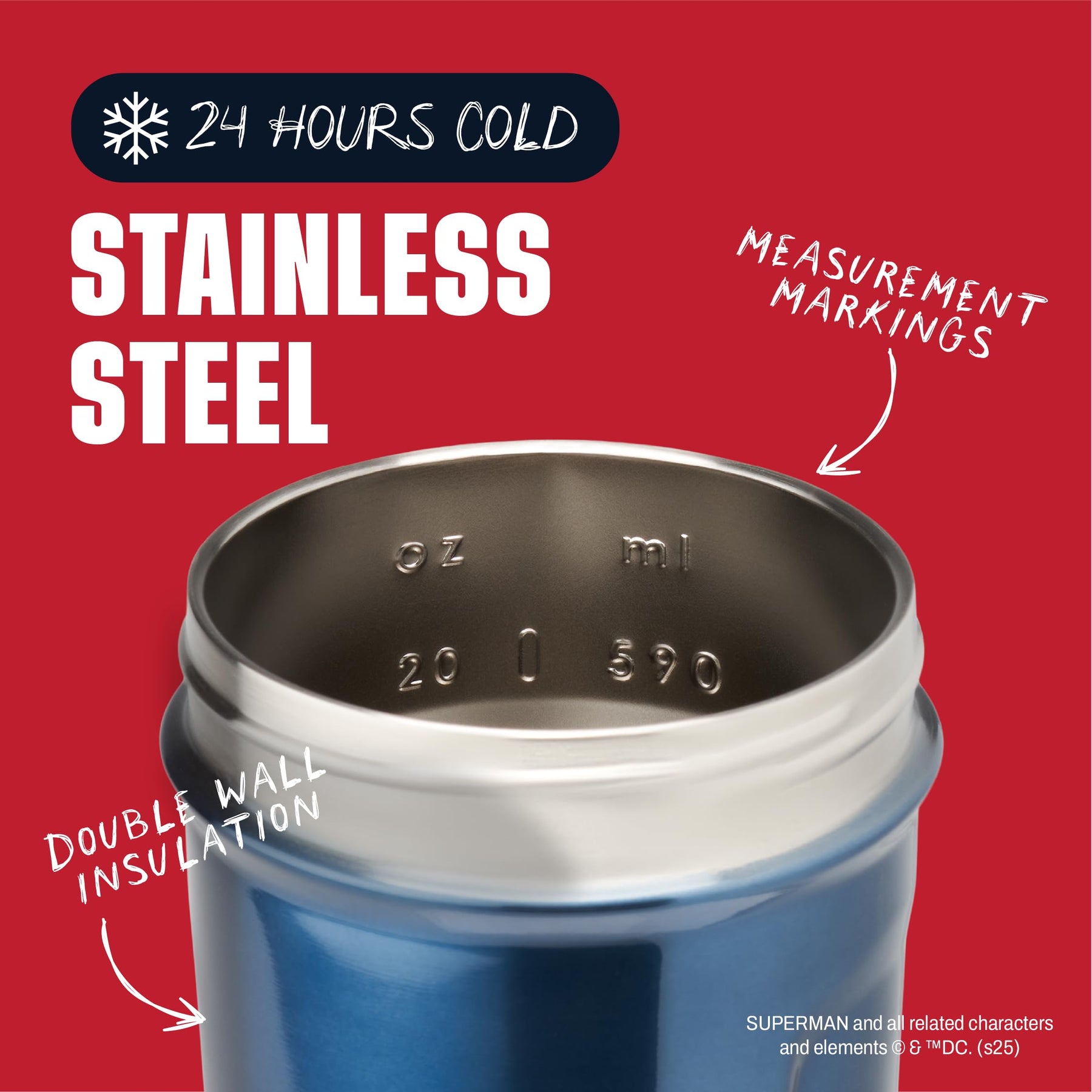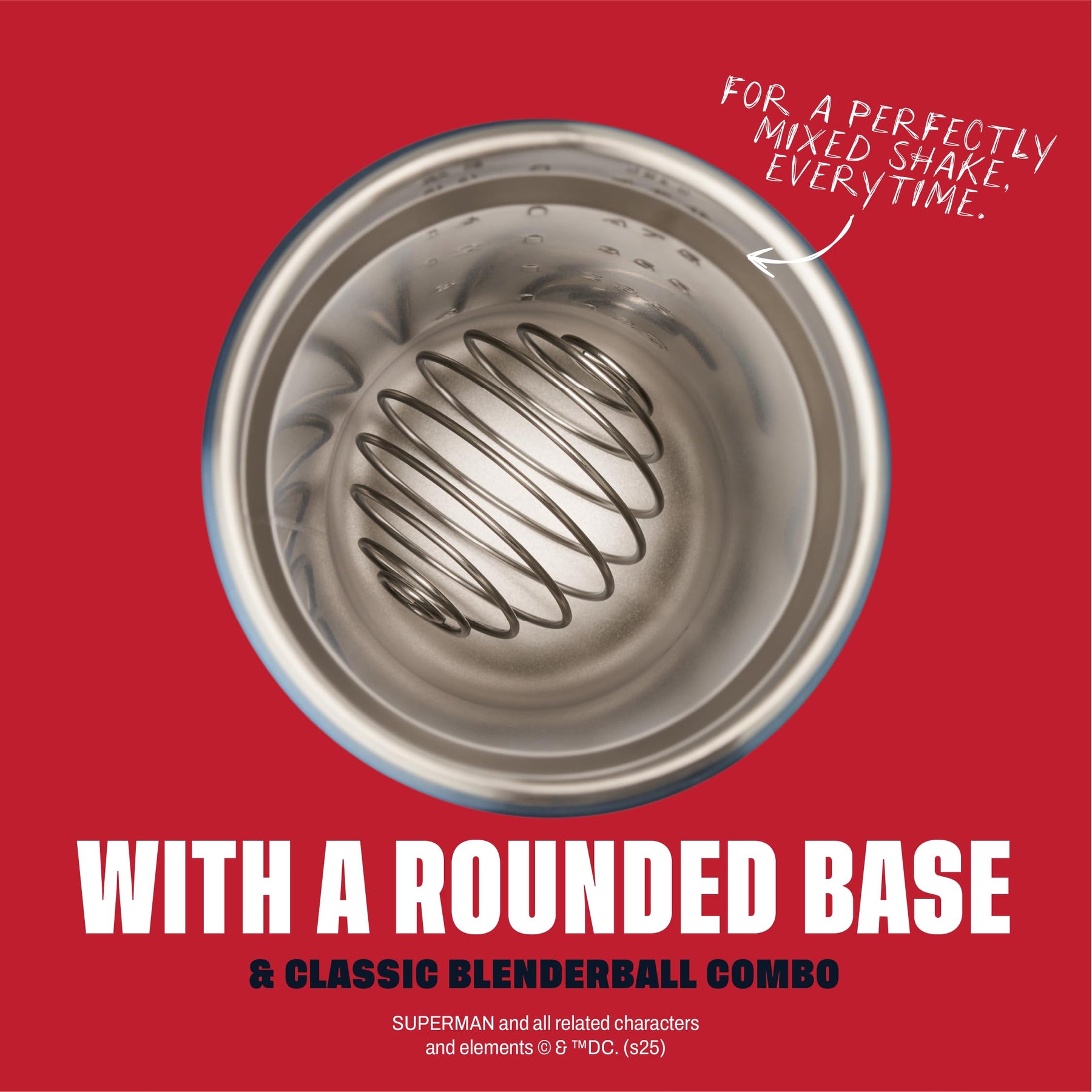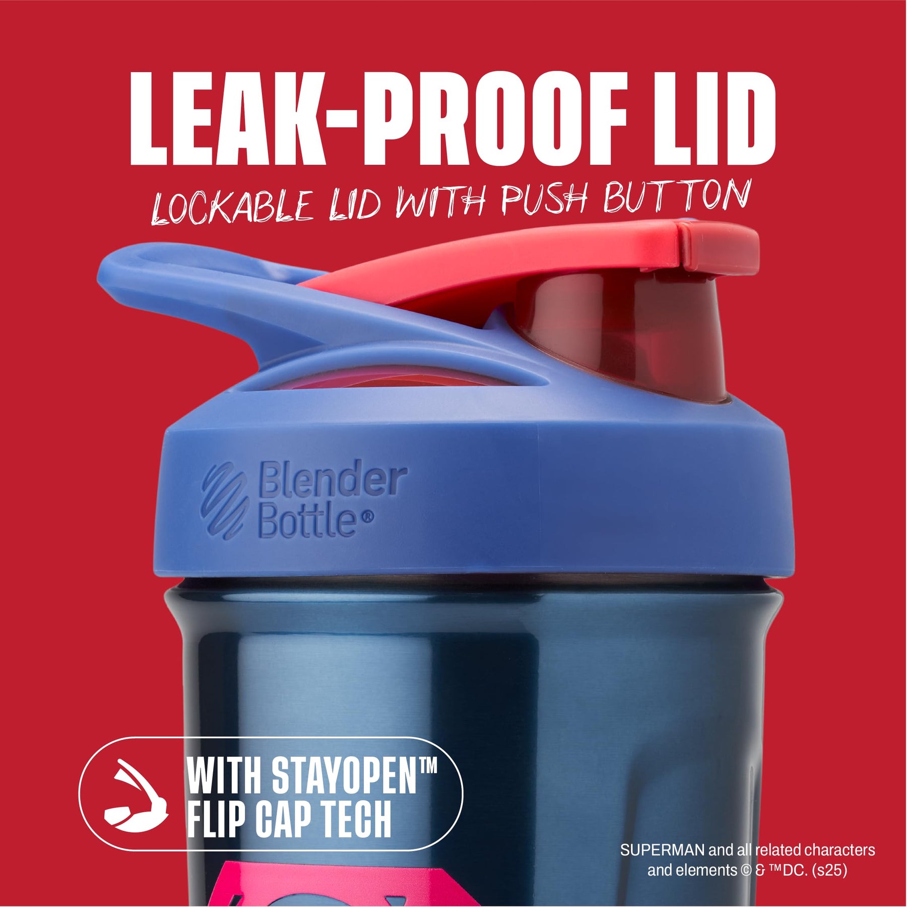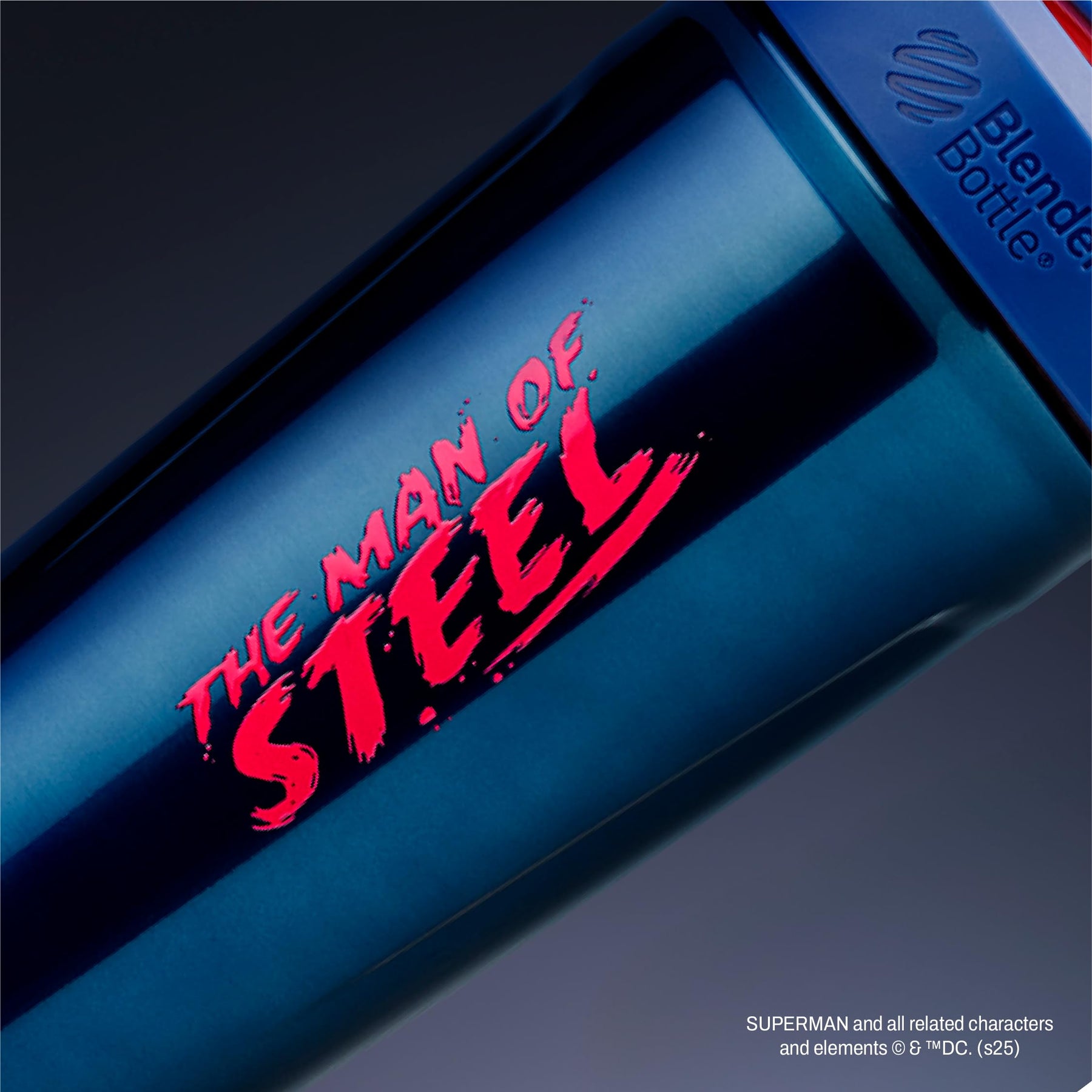 BlenderBottle Superman Strada Shaker Cup Insulated Stainless Steel Water Bottle with Wire Whisk, 24-Ounce, Man of Steel - Blue