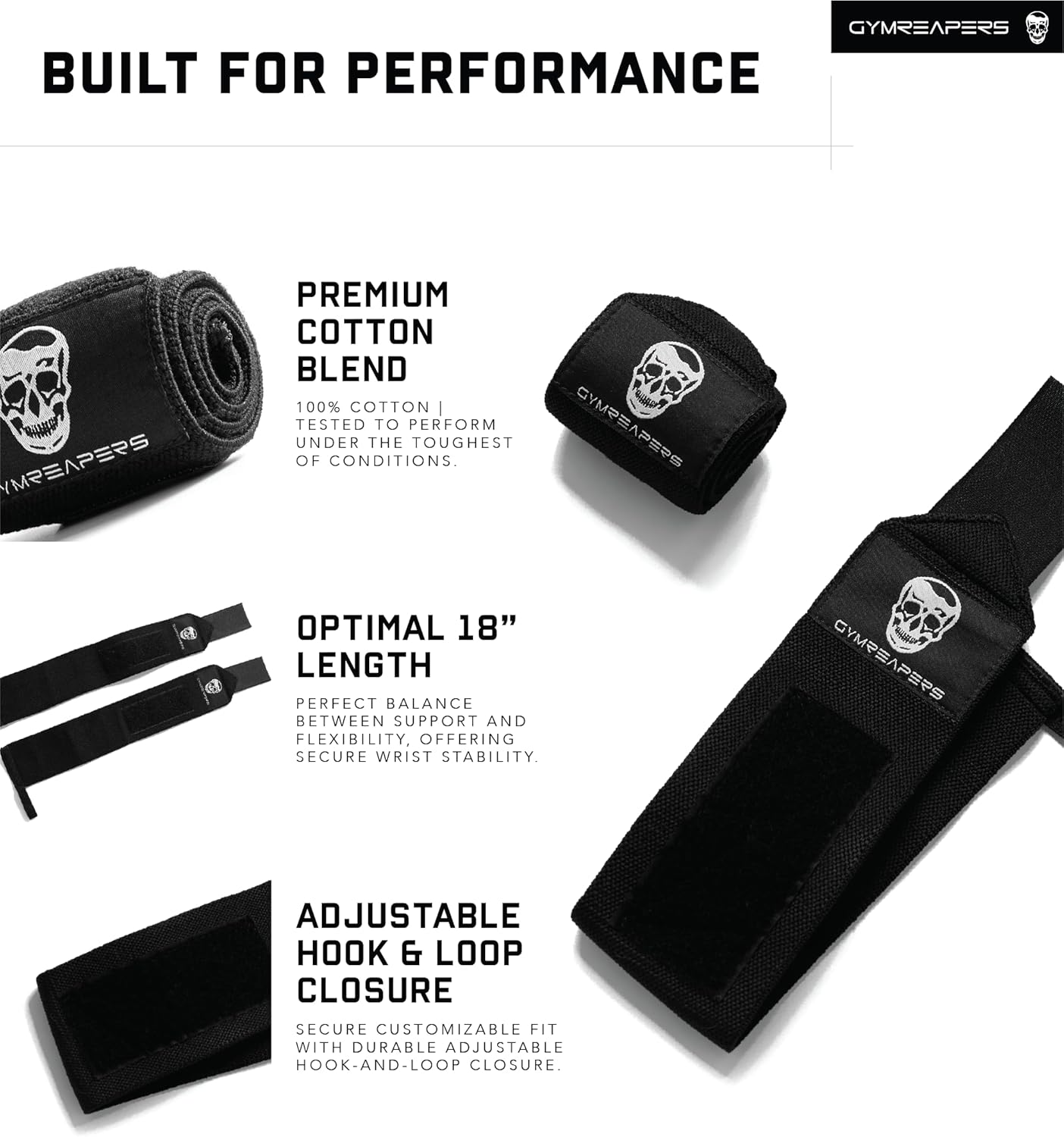 Gymreapers Weightlifting Wrist Wraps (IPF Approved) 18" Professional Quality Wrist Support with Heavy Duty Thumb Loop - Best Wrap for Powerlifting Competition, Strength Training, Bodybuilding