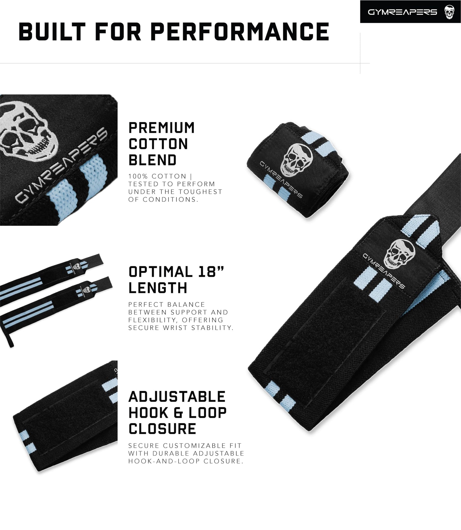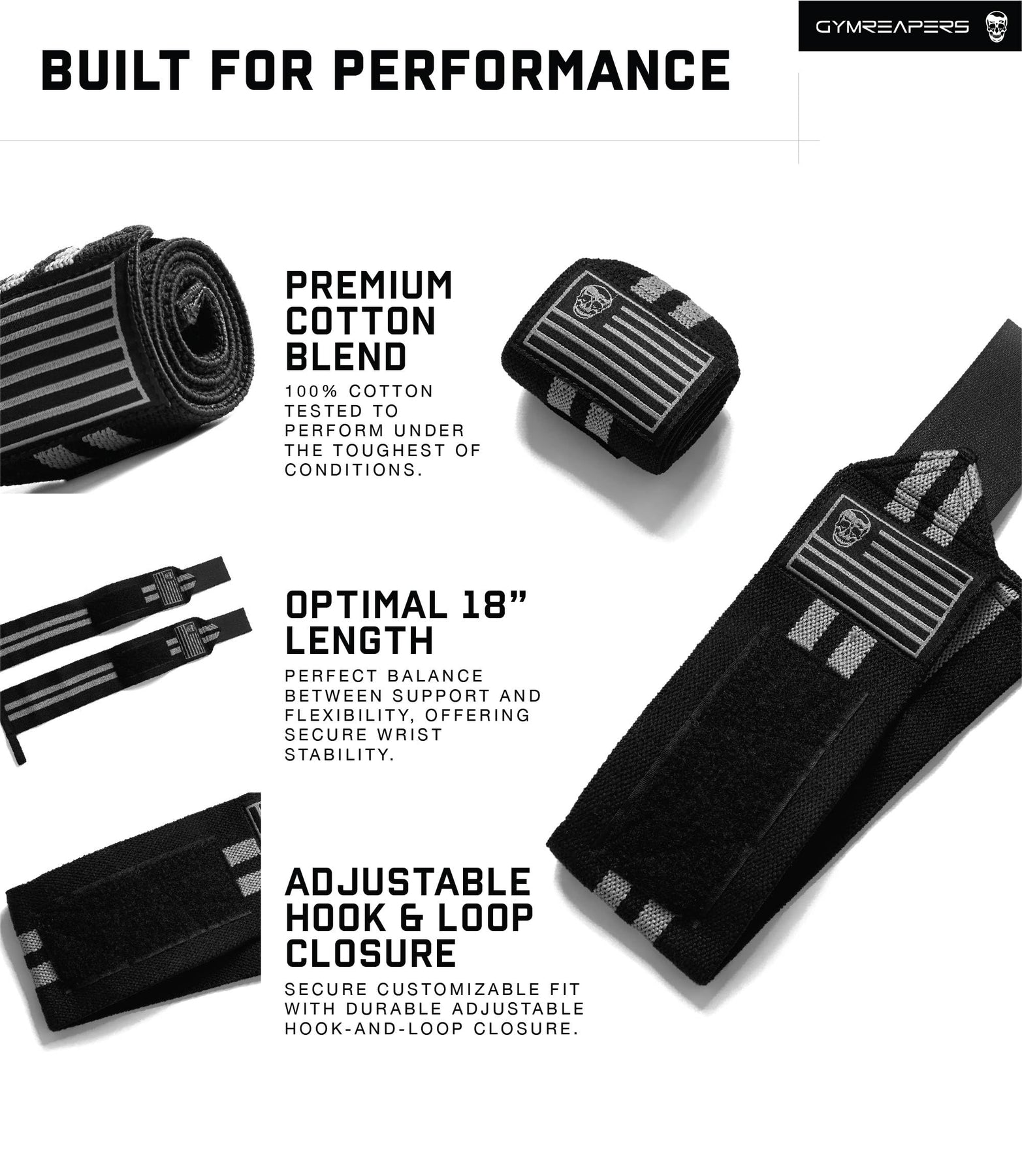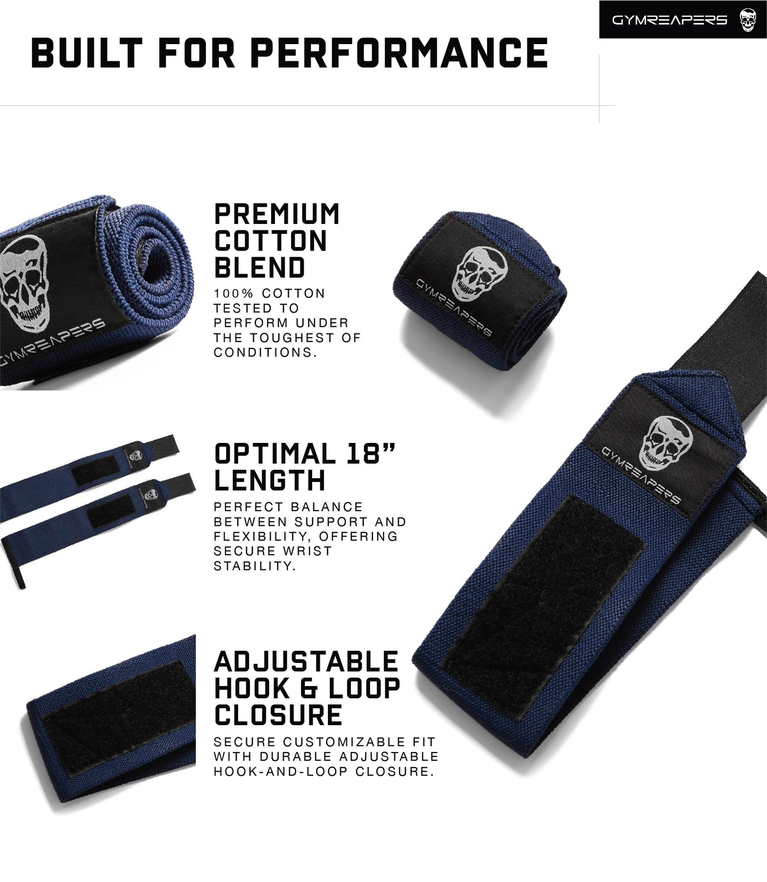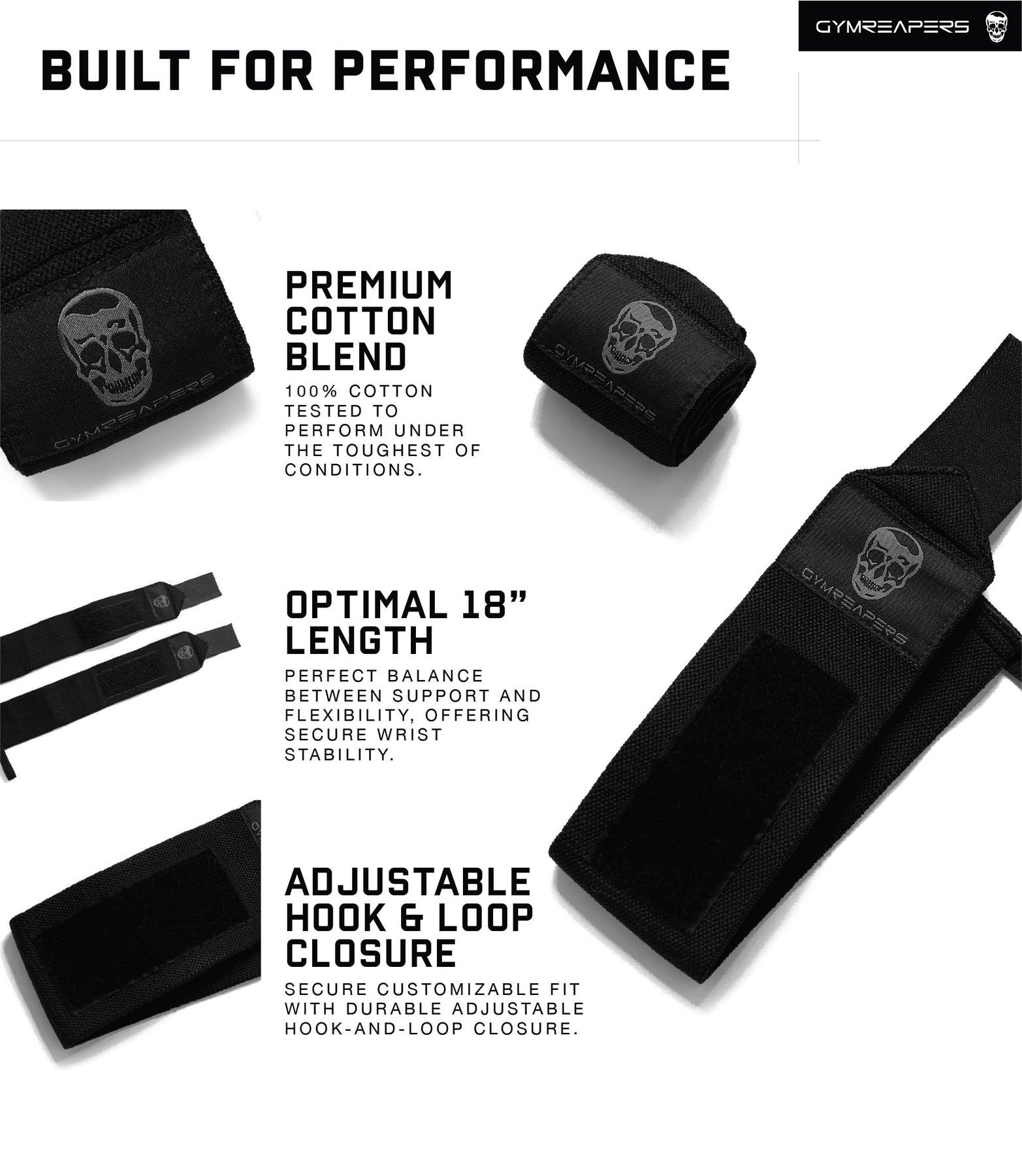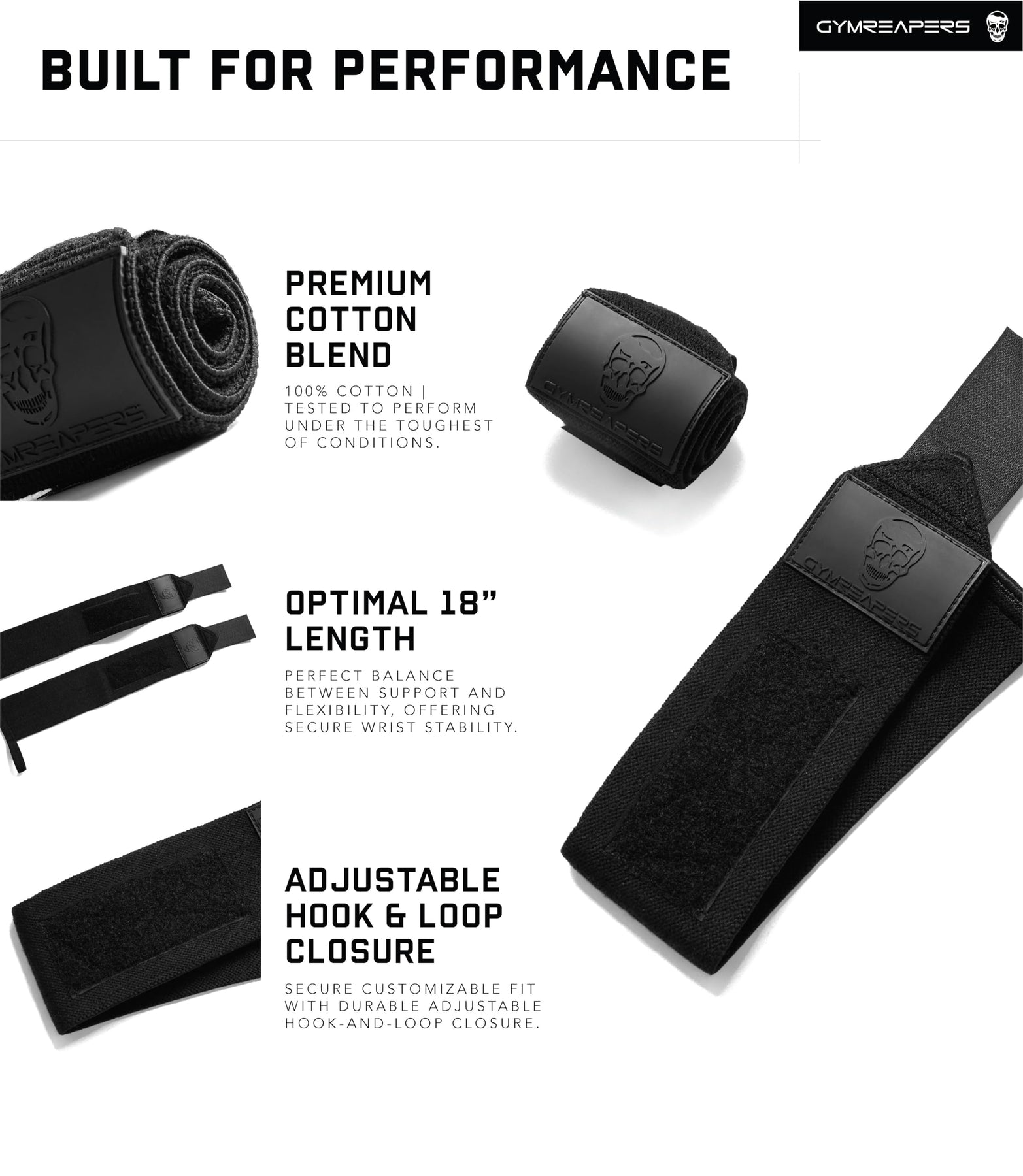 Gymreapers Weightlifting Wrist Wraps (IPF Approved) 18" Professional Quality Wrist Support with Heavy Duty Thumb Loop - Best Wrap for Powerlifting Competition, Strength Training, Bodybuilding