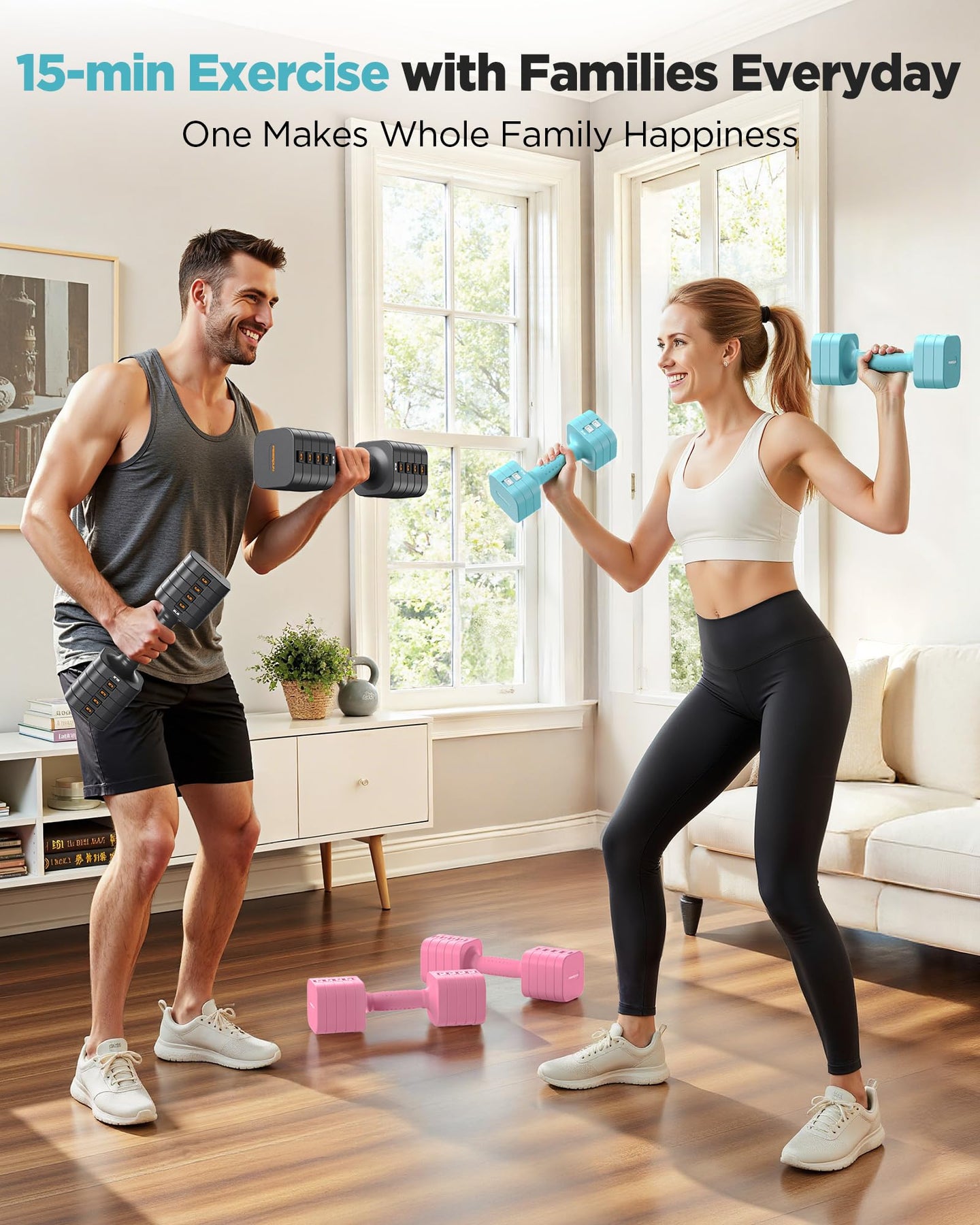FEIERDUN 5-in-1 Adjustable Dumbbell Set of 2, 20LBS/10LBS Hand Weights for Women, 1s-Adjust Dual-Stable Dumbbell Set for Women Home Gym & Outdoor