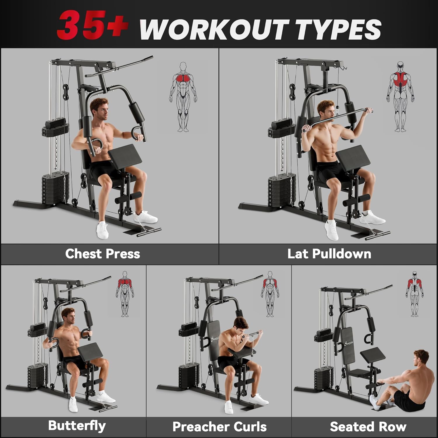 Soozier Home Gym System, Multifunction Workout Station with 100Lbs Weight Stack, 100Lbs Resistance for Full Body Workout Machine