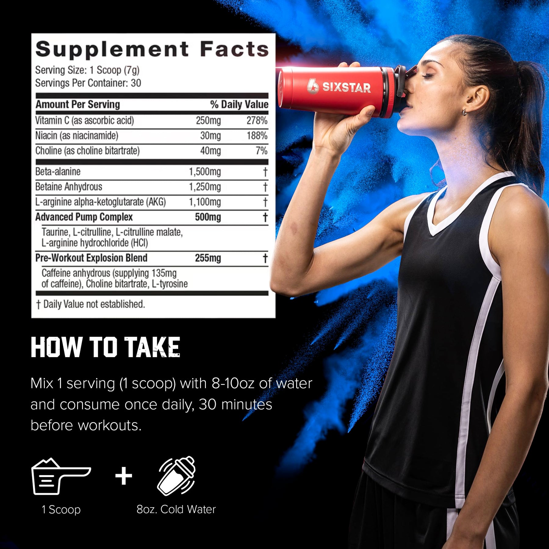 Six Star Pre-Workout Powder for Men & Women, Fruit Punch (30 Servings) - Preworkout Explosion 2.0 Energy Powder Drink Mix with Beta-Alanine & Caffeine - Sports Nutrition Supplement Products