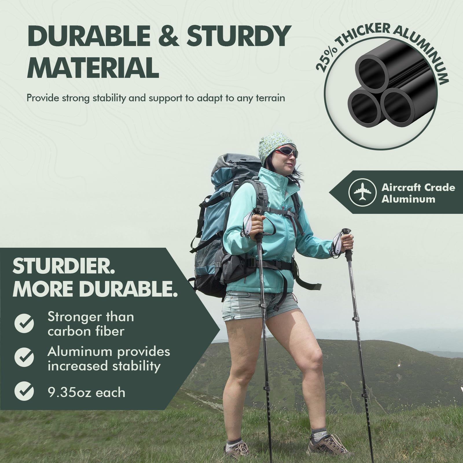 KINGGEAR Nordic Walking Stick, TP1 Hiking Poles Retractable Lightweight 7075 Aluminum, Trekking Poles with Flip Lock, Natural Cork and EVA Grip, 2pc Hiking Gear