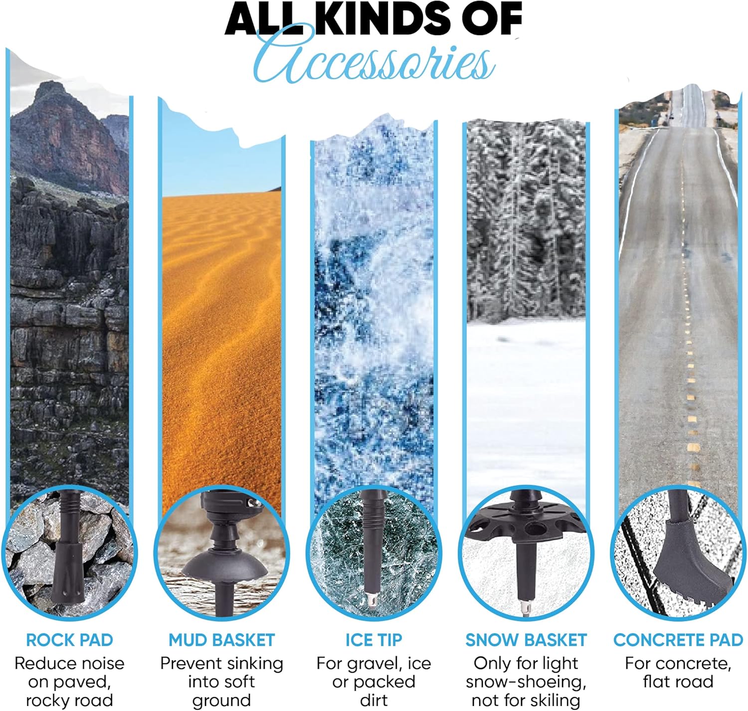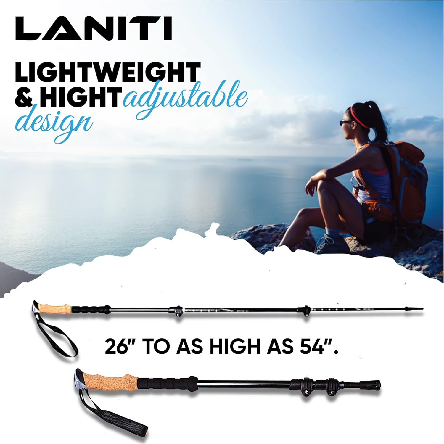 Laniti Nordic Walking Sticks – Adjustable Hiking Poles Expandable to 54" – Lightweight Trekking Poles with 10 Tips – Shock-Absorbing Carbon Fiber & Aluminum – for Men, Women