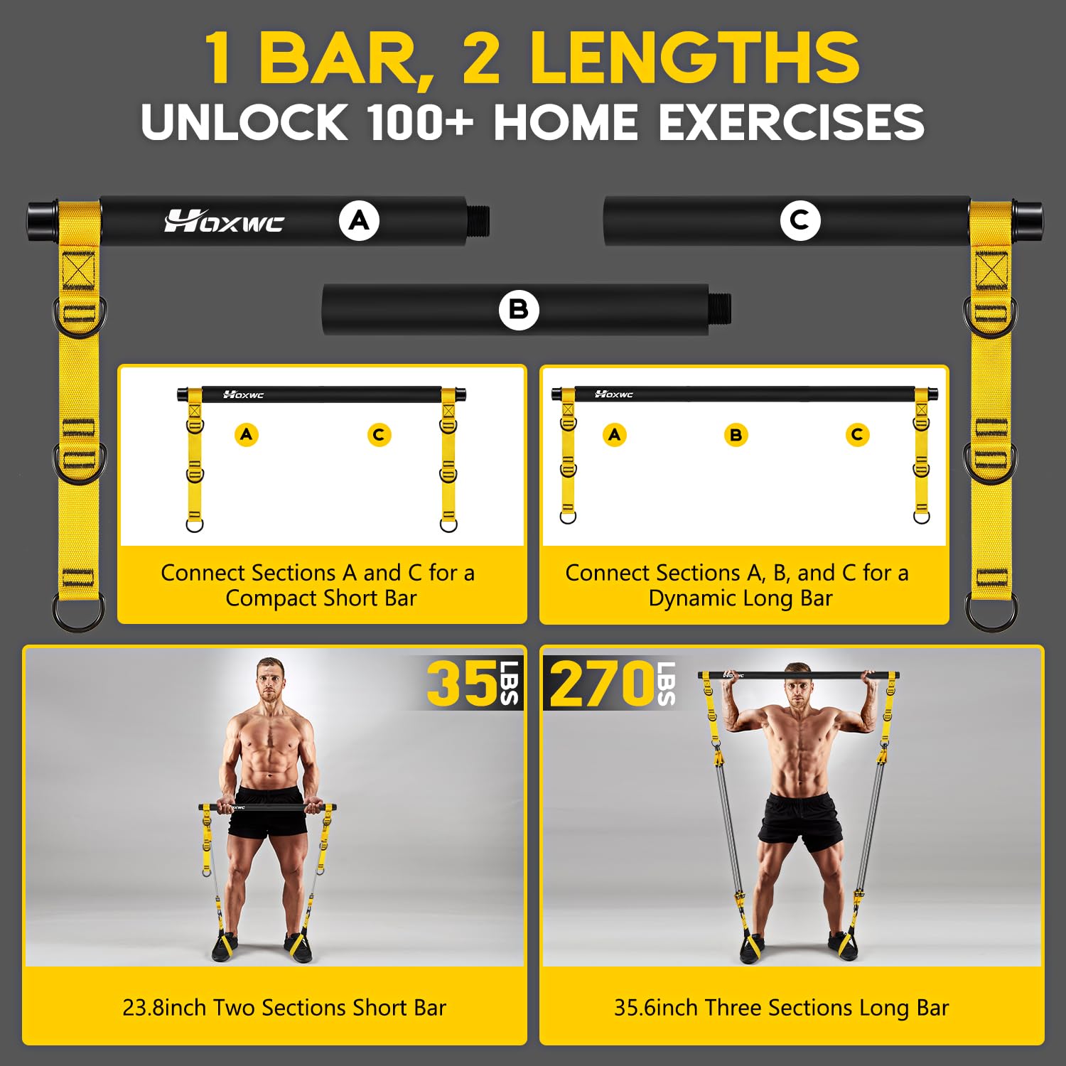 Pilates Equipment, Portable Pilates Bar Kit with Resistance Bands, Professional Adjustable Heavy Duty Squat Workout Equipment for Men, Home Gym Muscle Strength Training, Full Body Exercise