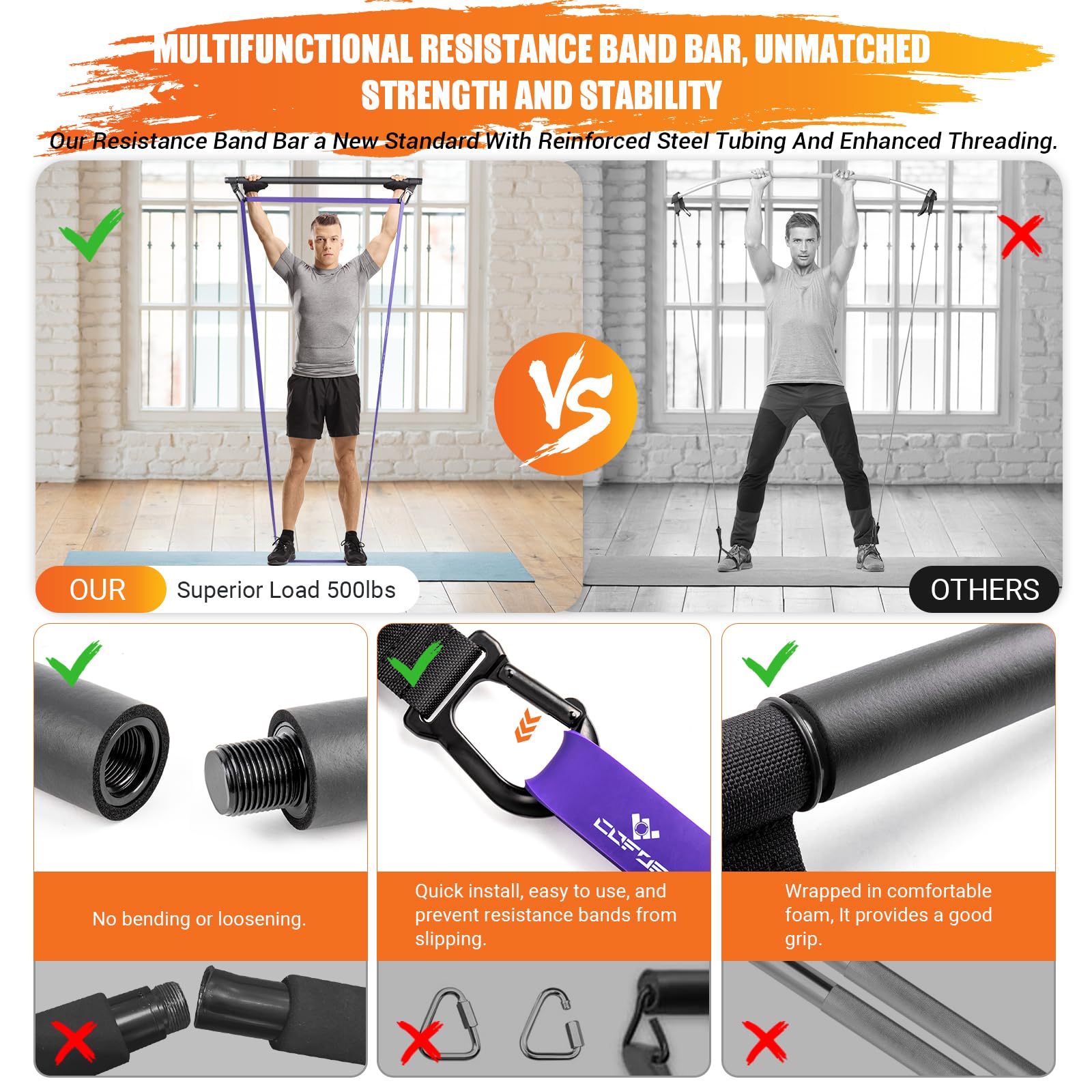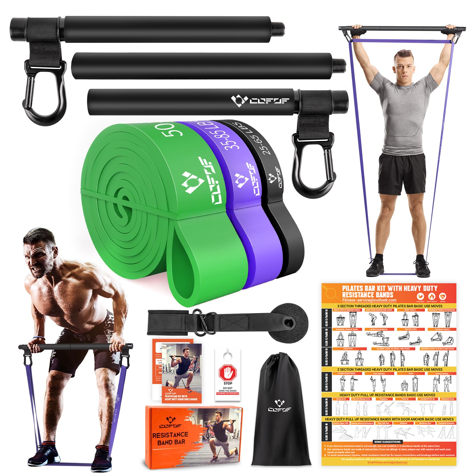 Portable Heavy Duty Resistance Bar with 3 Resistance Bands, Pilates Bar with Pull Up Bands & Training Poster, Yoga Pilates Equipment for Home Gym