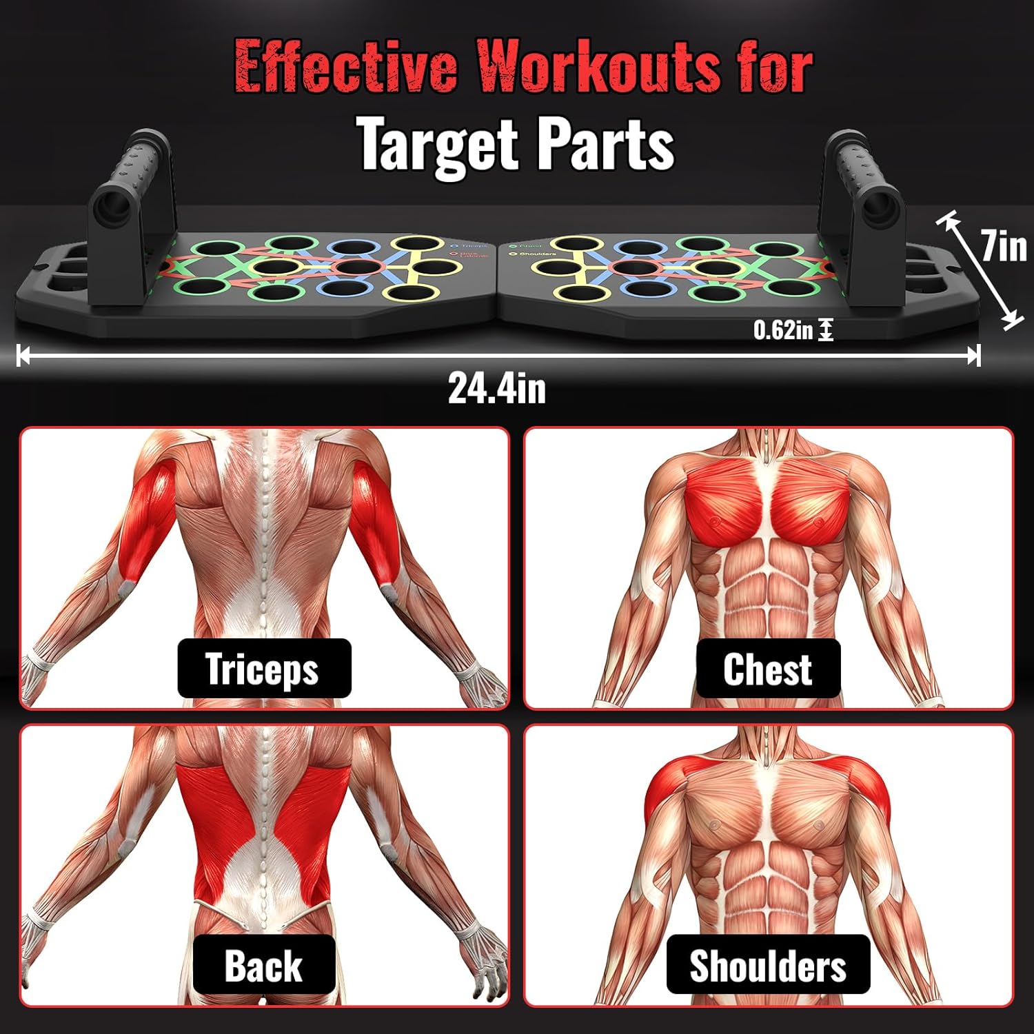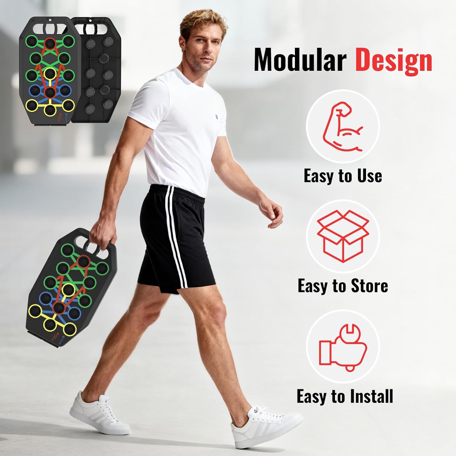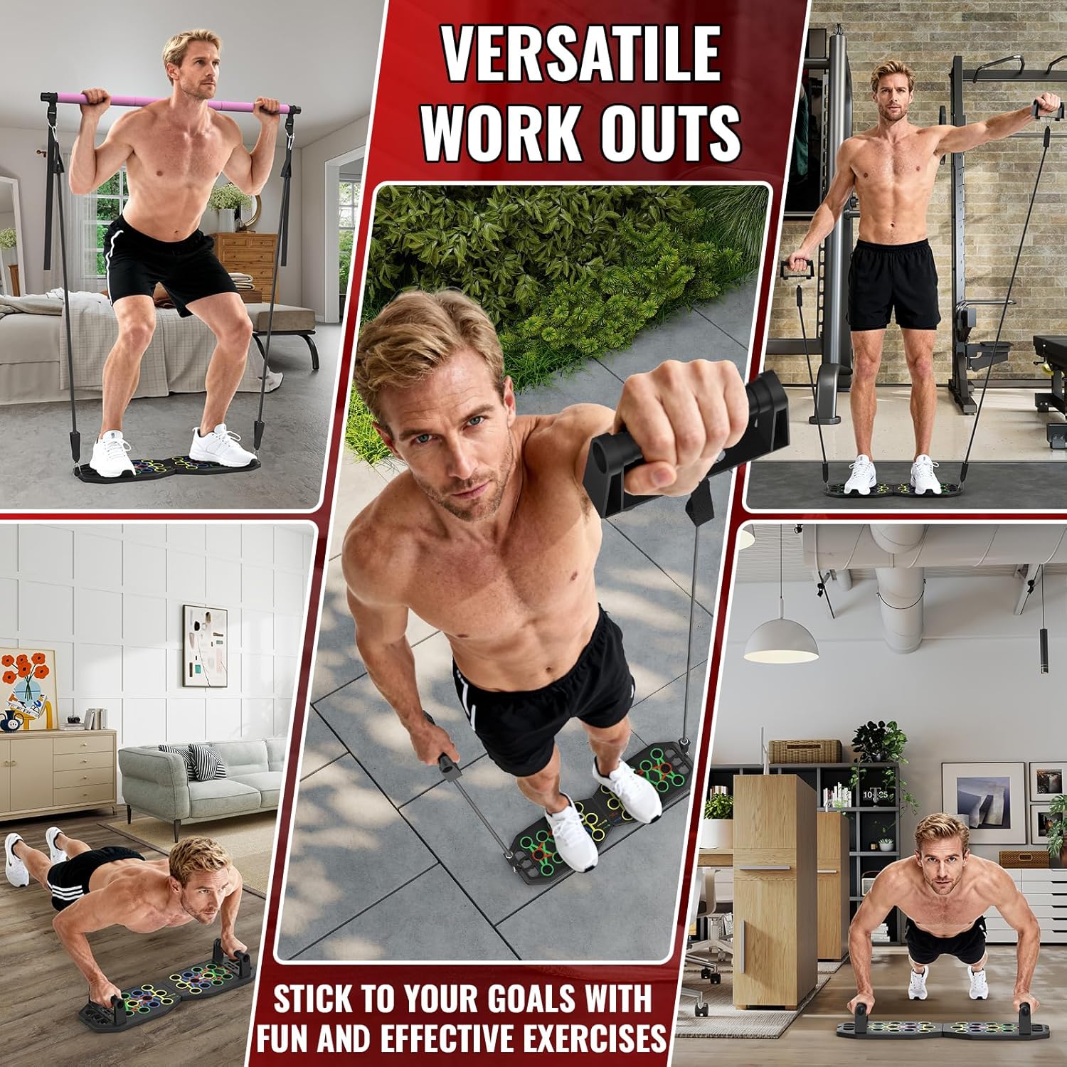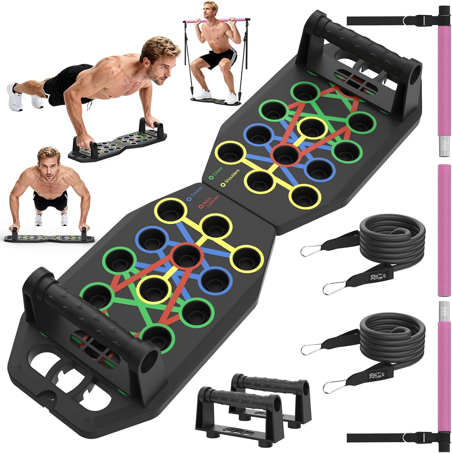 Push Up Board Bar Kit with Resistance Bands, Portable Pilates Bar for Fitness, Home Workout Gym System, Foldable Exercise Equipment for Full Body Training, Men & Women