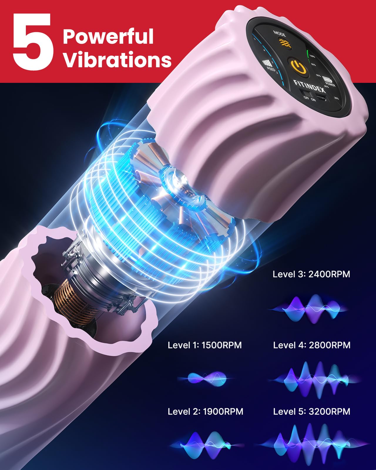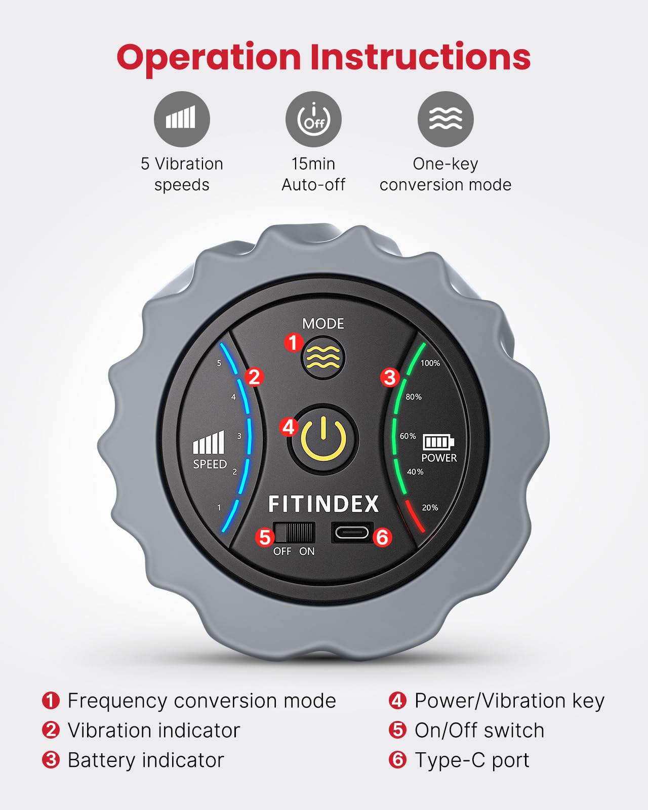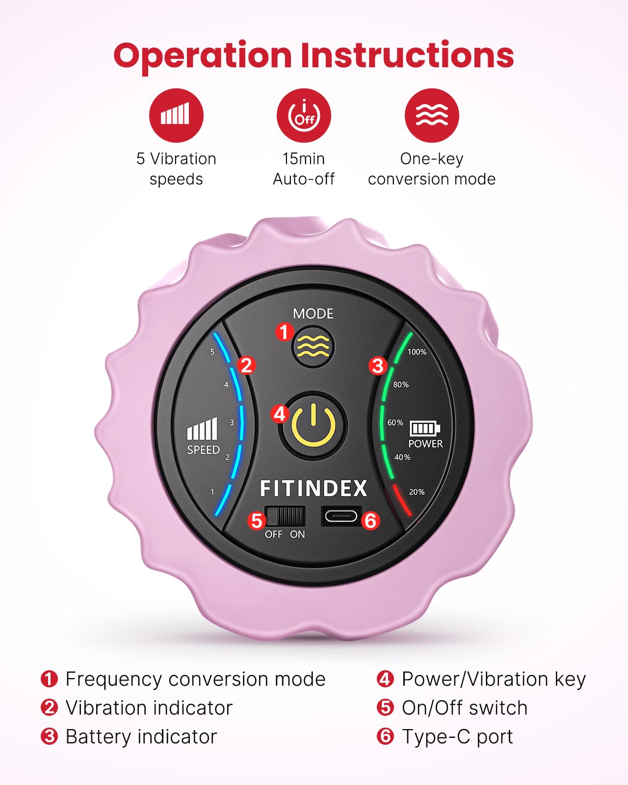 FITINDEX Vibrating Foam Roller for Back Pain, 5-Speed Muscle Massage, FSA HSA Eligible, Exercise, Muscles Deep Tissue, Physical Therapy, Pilates, Yoga, Neck, Leg, Rechargeable, Travel Portable Gray