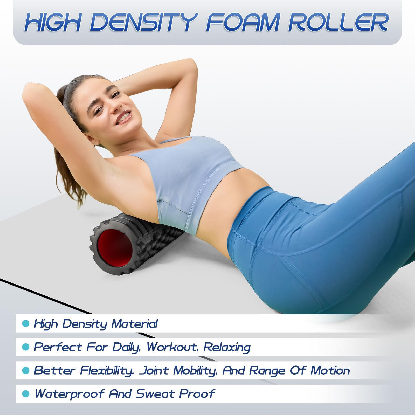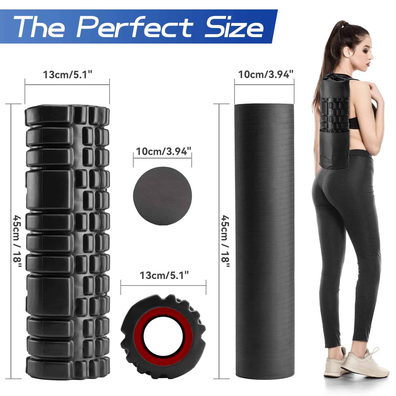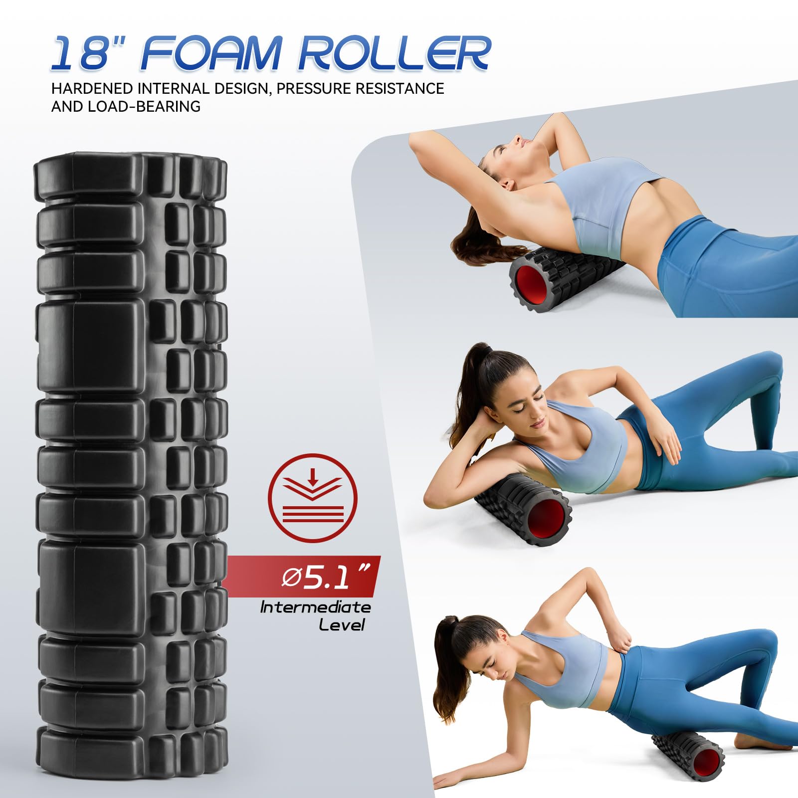 Foam Roller High Density Foam Roller Set for Deep Tissue Muscle Massage, 18" Trigger Point Fitness Exercise Massage Roller, Self-Myofascial Release for Whole Body (Black-18(2 in 1))