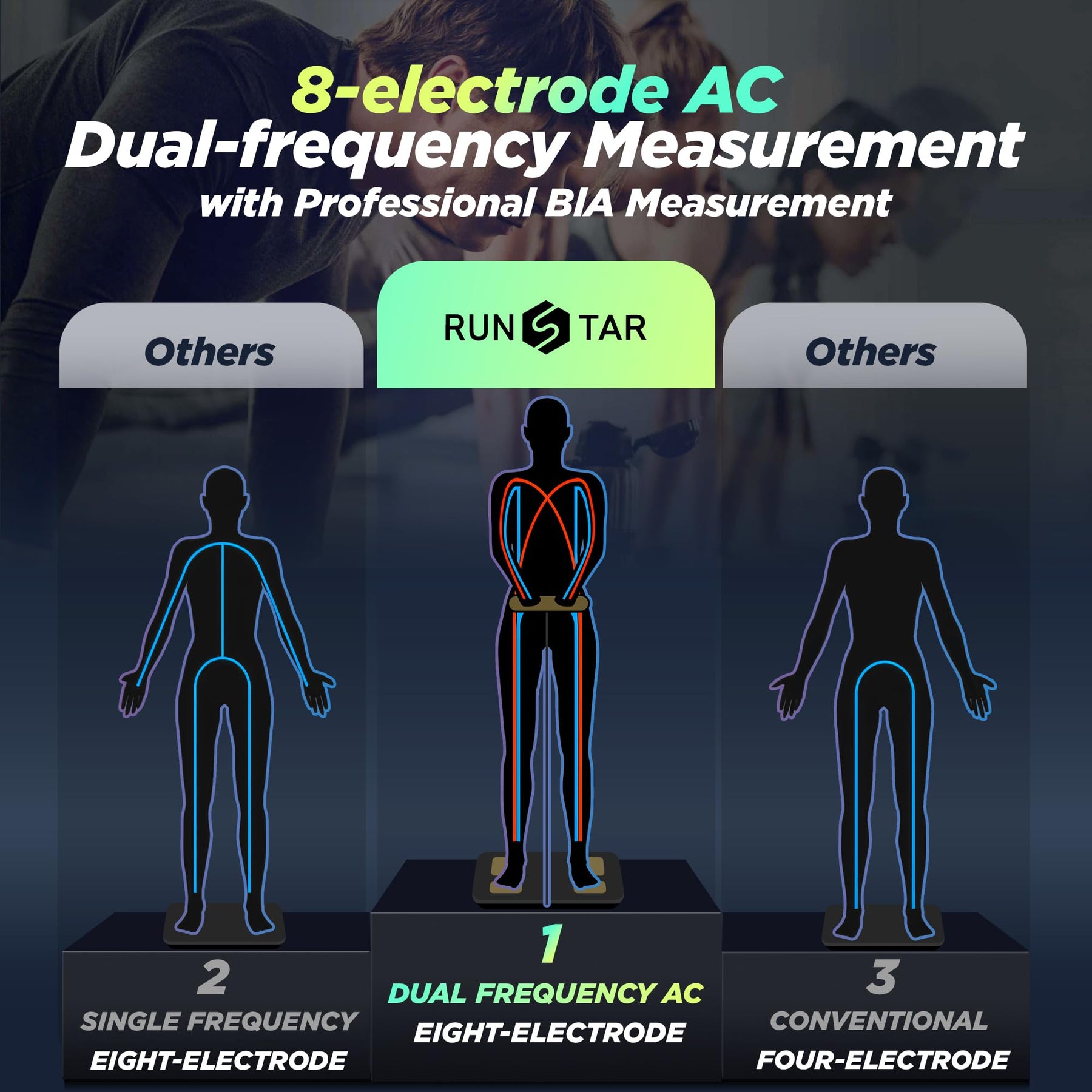 RunStar Smart Scale FSA&HSA Eligible, 8 Electrodes Digital Bathroom Scale for Body Weight and Fat, BMI, Muscle Mass 28 Body Composition Measurement, with Full-Color TFT LCD on Retractable Handle