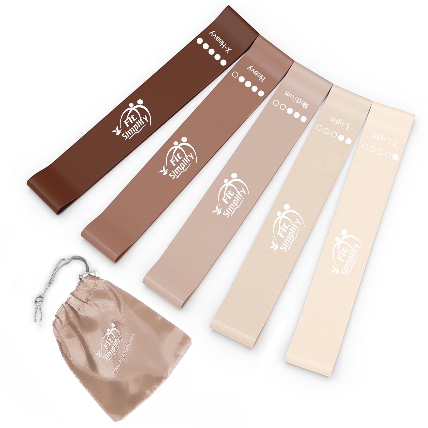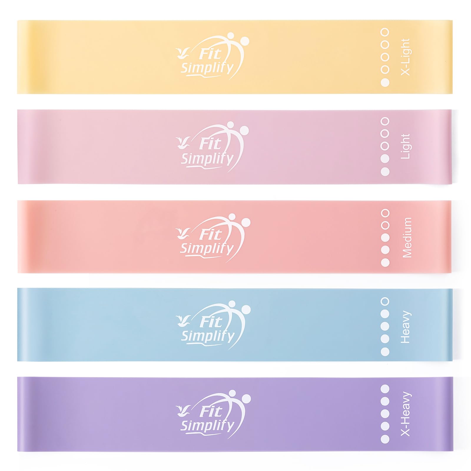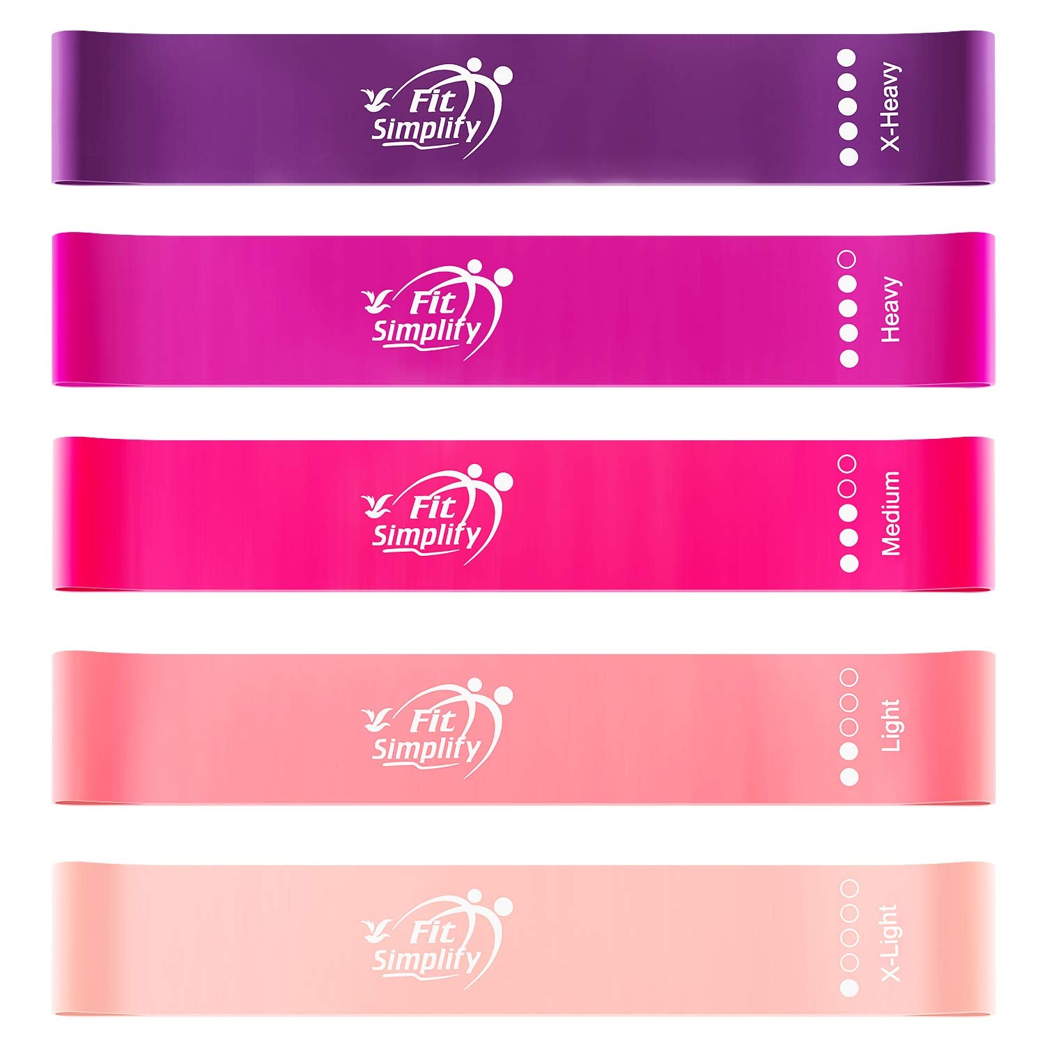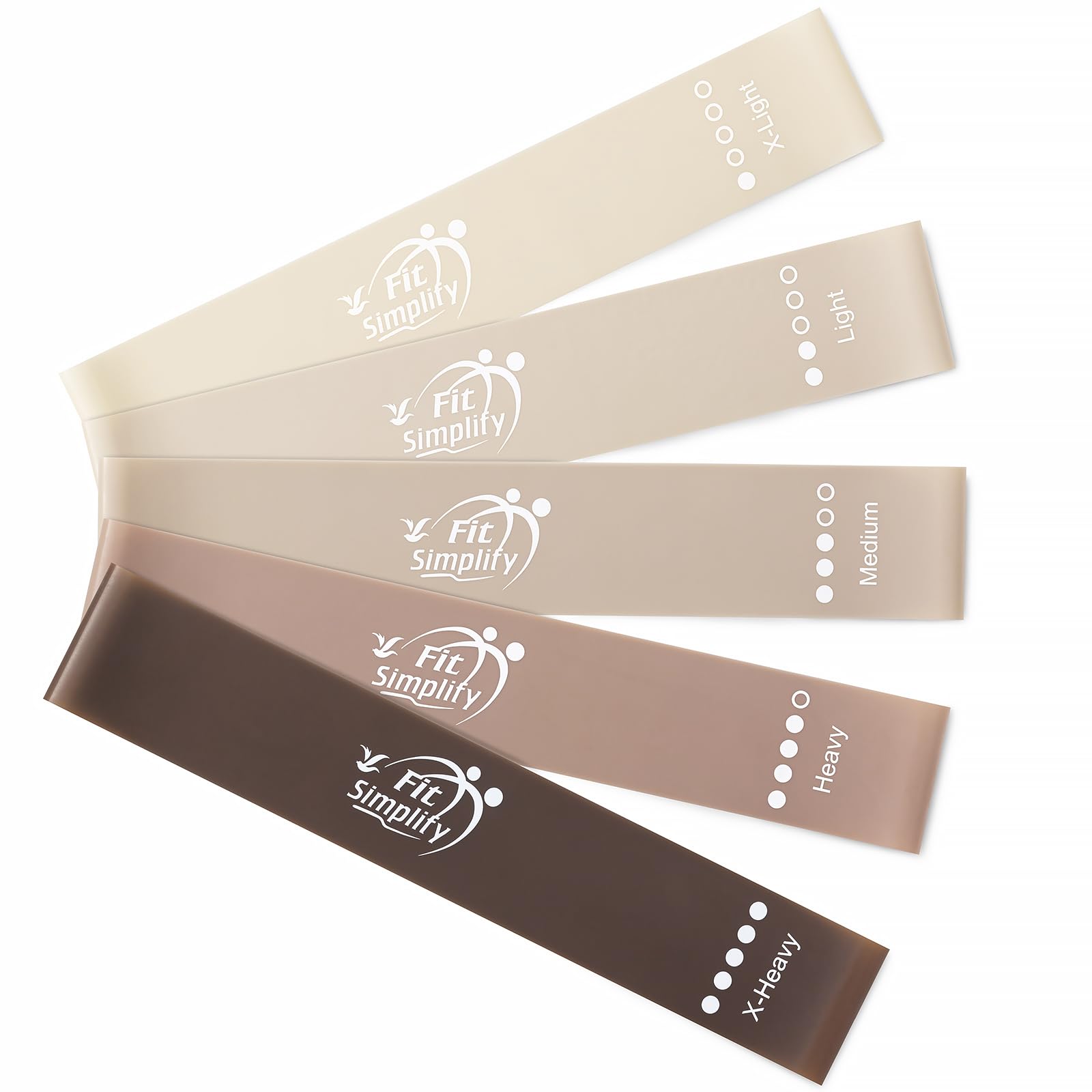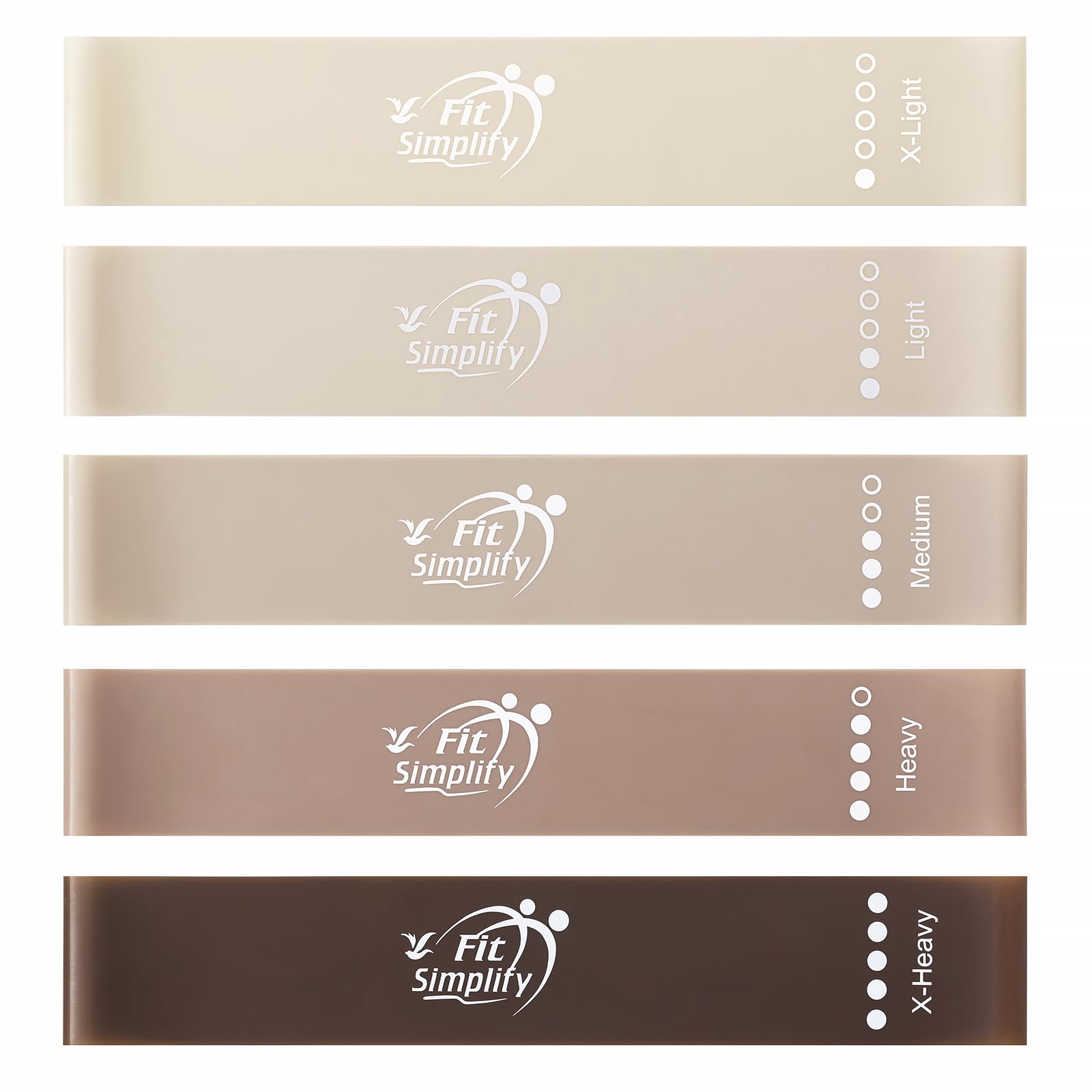 Fit Simplify Resistance Loop Exercise Bands with Instruction Guide and Carry Bag, Set of 5