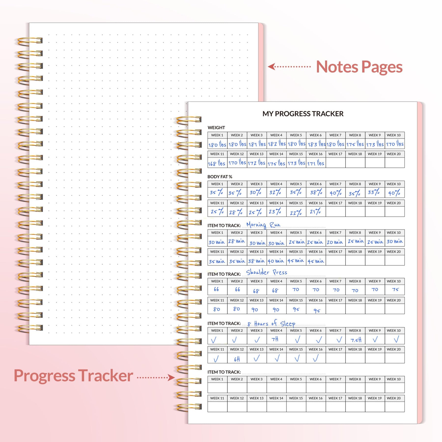 Fitness Journal Workout Planner for Women & Men, A5 (6.4" x 8.3") Workout Journal Log Book Planner Gift for Track Gym Essentials, Home Workouts, Track Progress, Achieve Wellness Goals, Pink