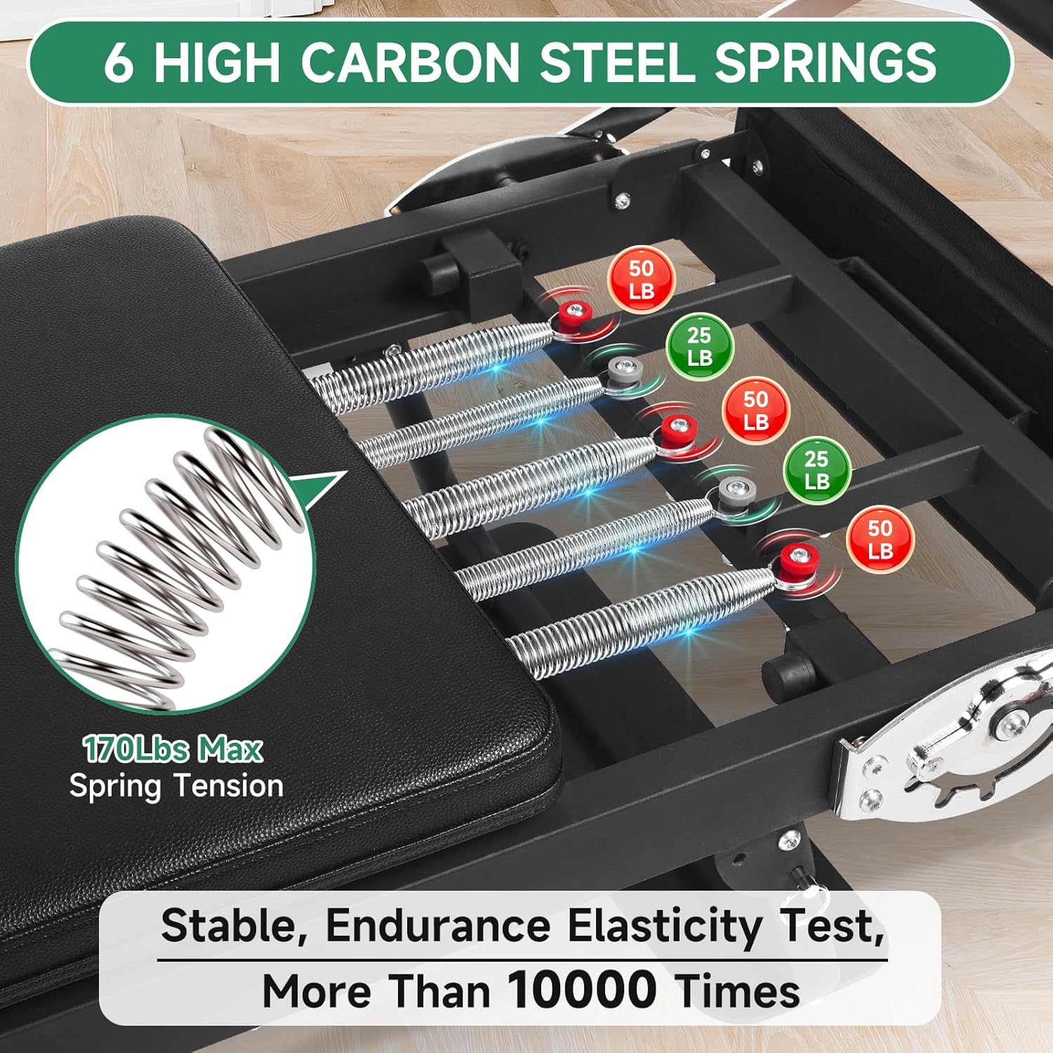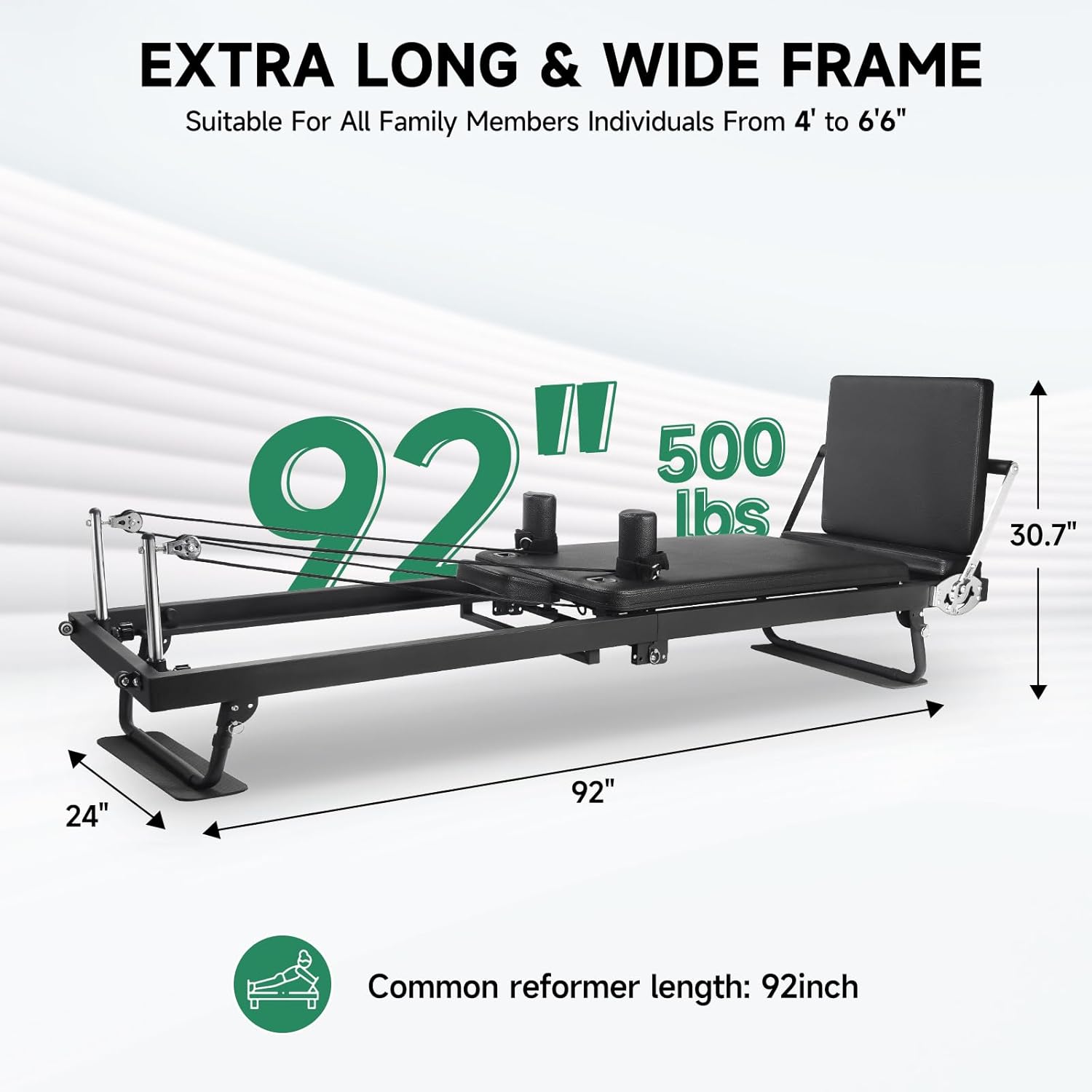 92" 2ND Gen Extended Pilates Reformer, Foldable Pilates Machine with Pilates Ring Circle & Headrest, Jumpboard, Dual Resistance Springs, Pilates Equipment for Home Workout, up to 500 lbs