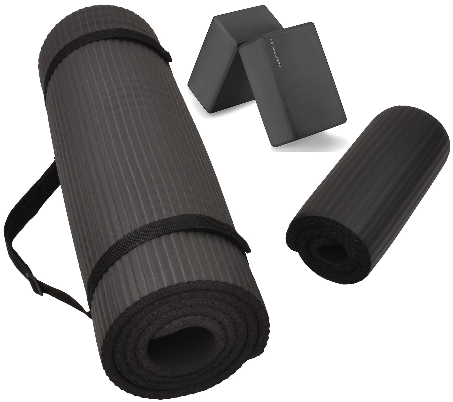 Fitvids All Purpose 1/2-Inch Extra Thick High Density Anti-Tear Exercise Yoga Mat and Knee Pad with Carrying Strap and Optional Yoga Blocks, Multiple