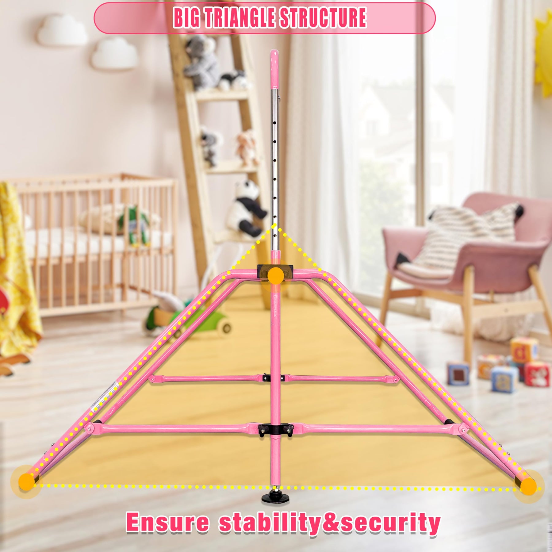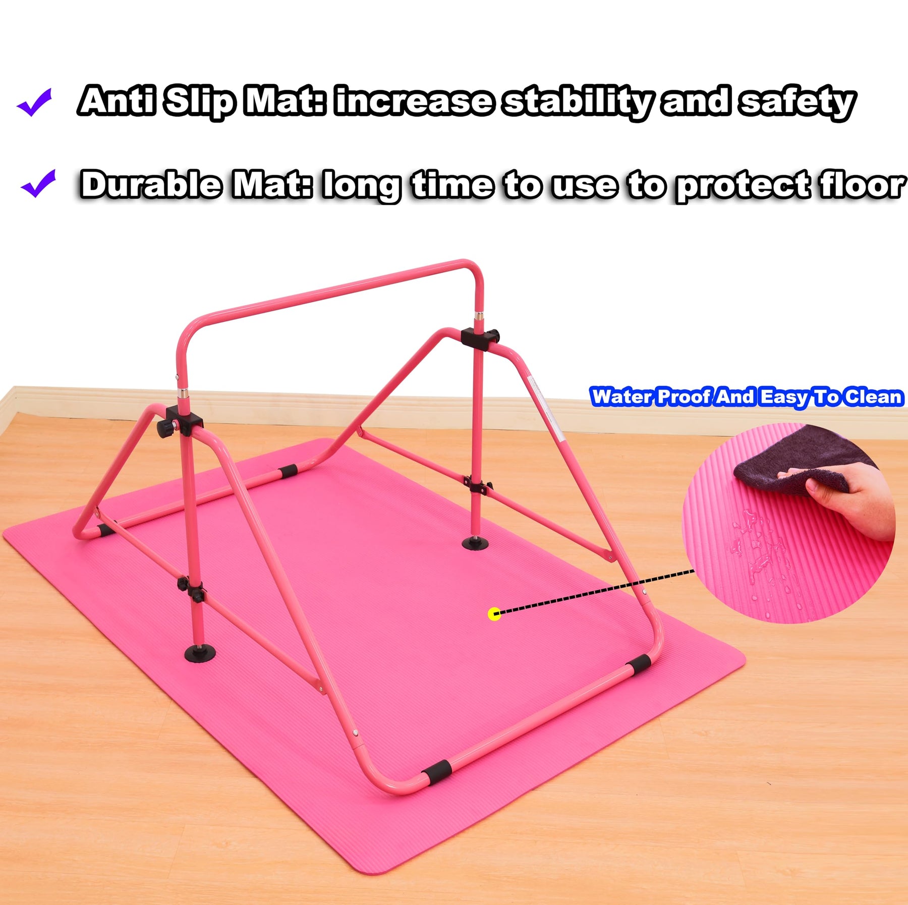 MARFULA Foldable Gymnastic Bar for Kids Ages 3-9, 9 Height Levels, 200 lbs Weight Capacity, 5 Ft Length Gymnastic Kip Bar with Mat, Gymnastic Equipment for Home and Gym Center Indoor Outdoor Use
