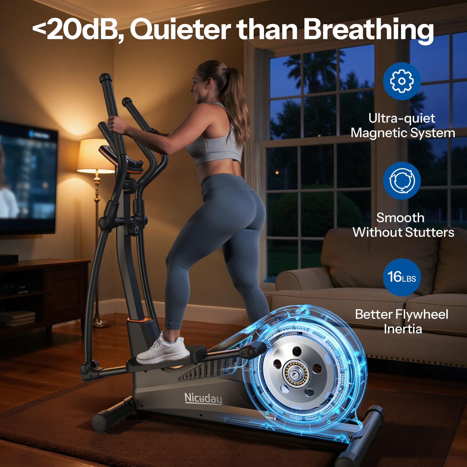 Niceday Elliptical Machine, Elliptical Exercise Machine for Home with Hyper-Quiet Magnetic Driving System, Elliptical Trainer with 15.5IN & 20IN Stride, 16 Resistance Levels, 500LBS Loading Capacity