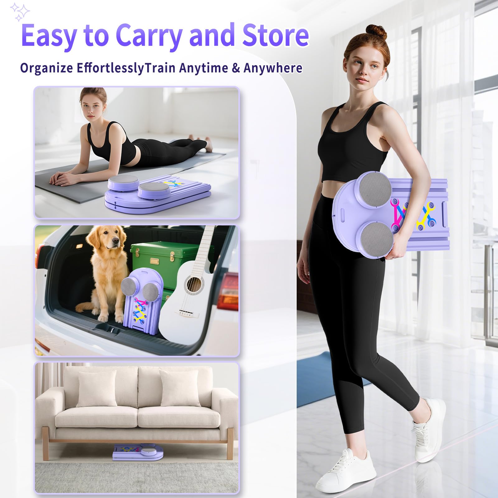 Pilates Board, Foldable Pilates Reformer Set for Home Workout with Timer, Multifunctional Portable Reformer Pilates Machine at Home Pilates Equipment