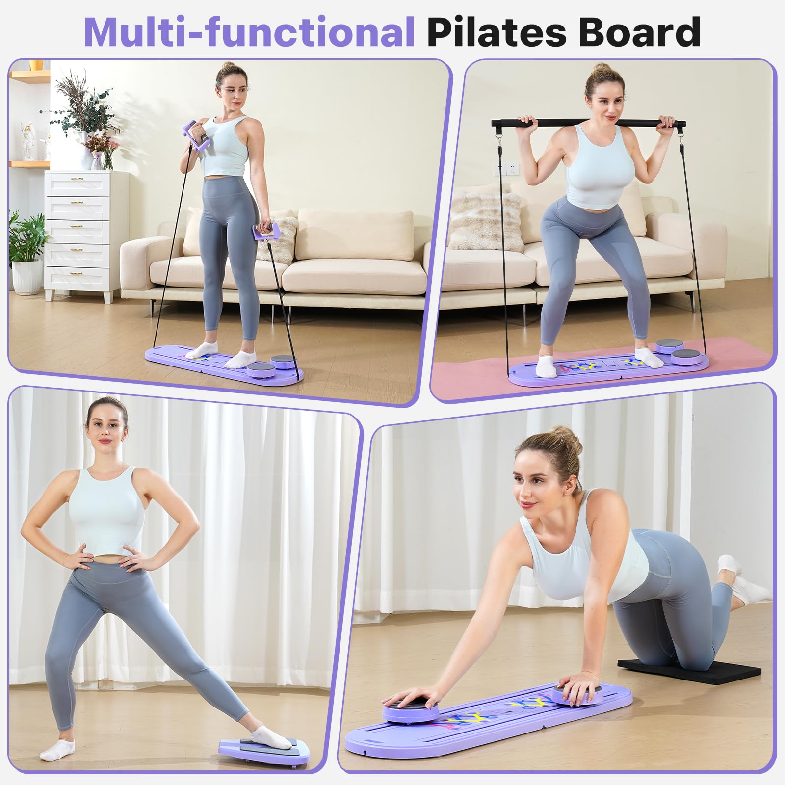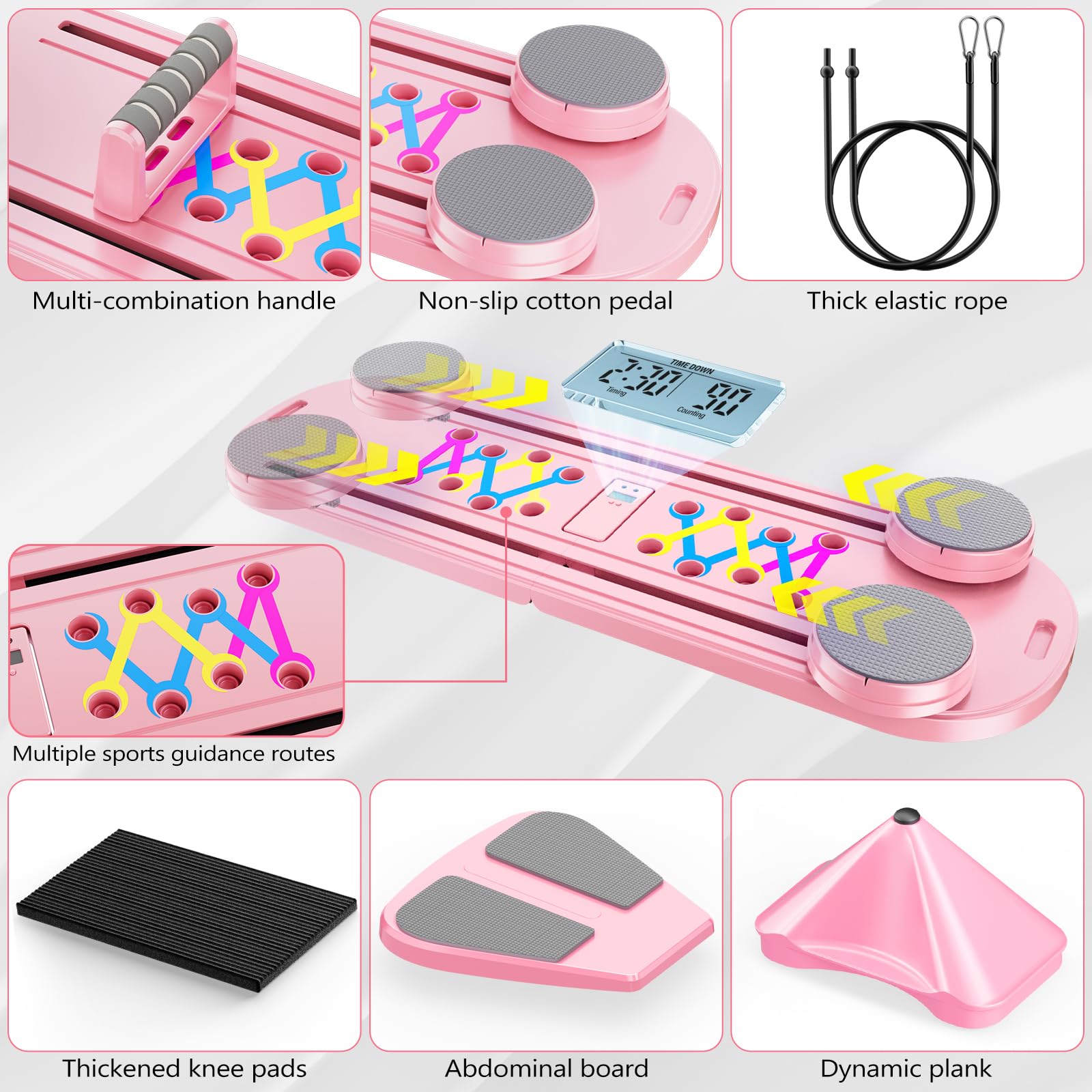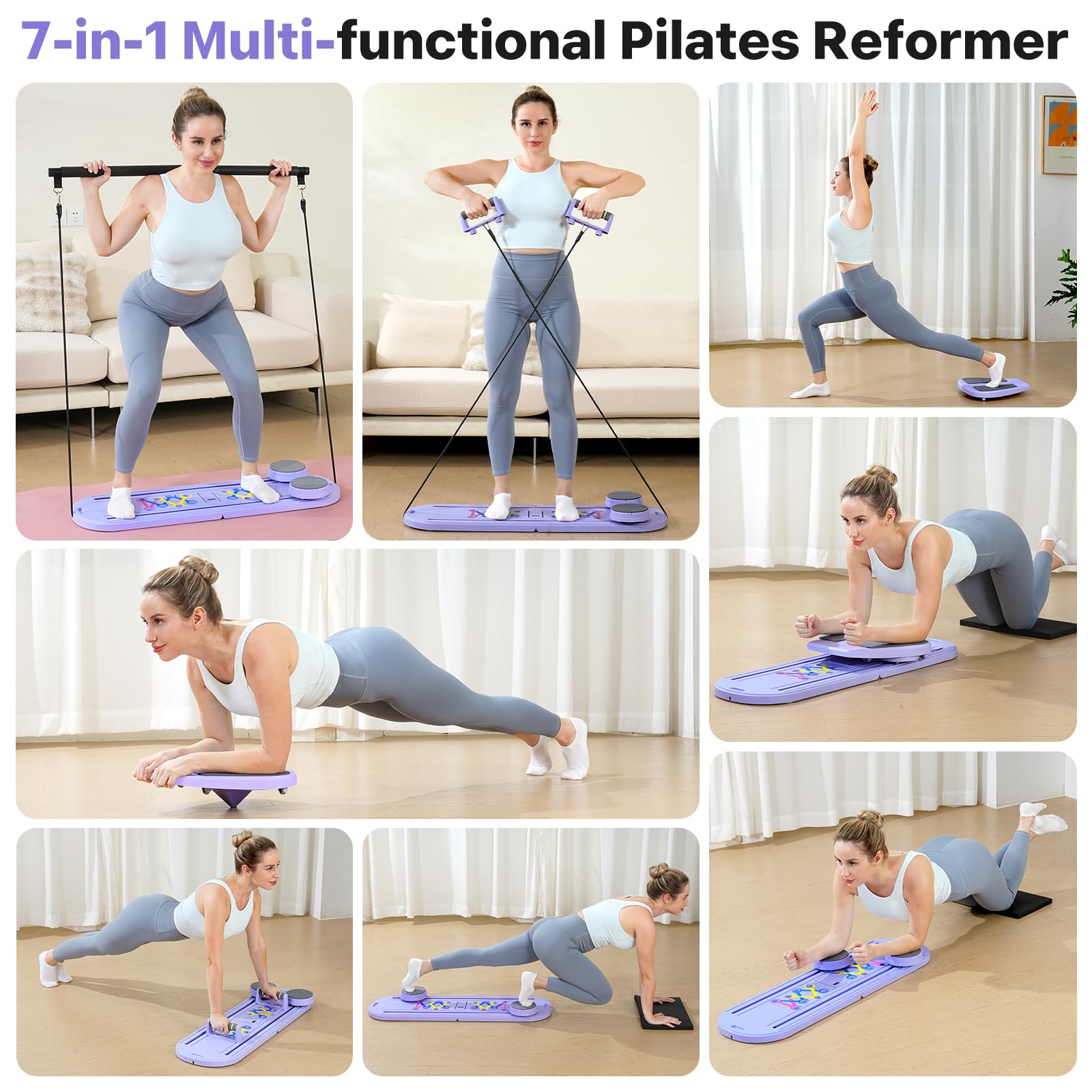 Pilates Board, Pilates Reformer Set, 7 in 1 Multifunctional Pilates Reformer Machine with Timer, Portable Foldable Pilates Board for Home Workout, Pilates Kit with Storage Bag