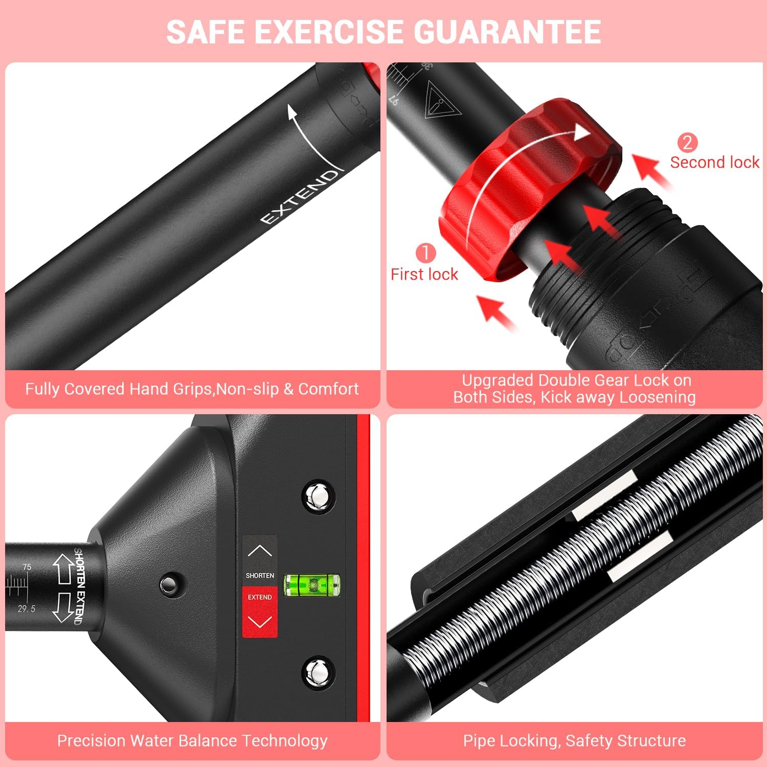 Pull Up Bar for Doorway: Sportneer Strength Training Pull-up Bars without Screw - Adjustable Width Locking Mechanism Chin Up Bar, Thickened Steel Max Limit 440 lbs Upper Body Fitness Pullup Bars for Home (Black-Red)