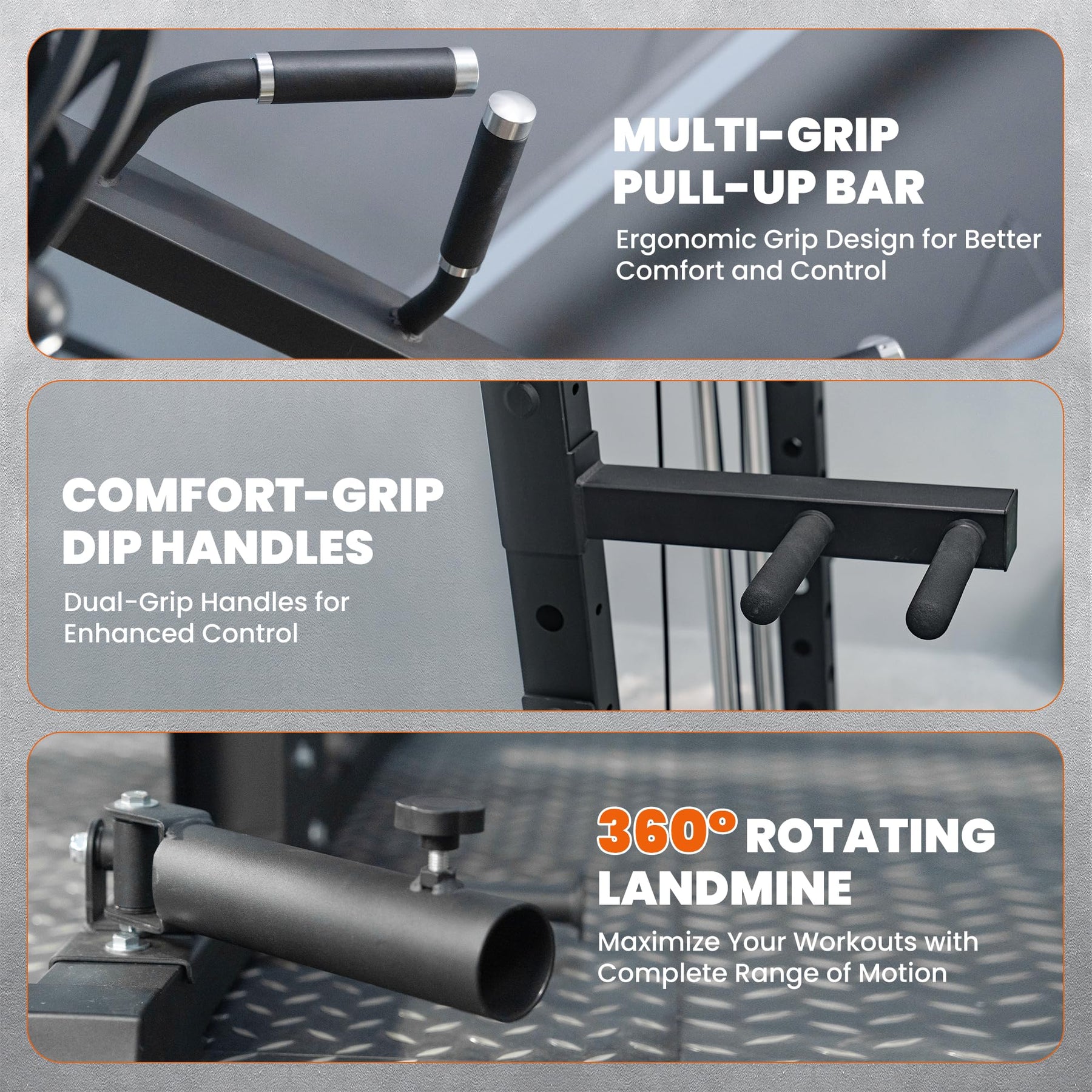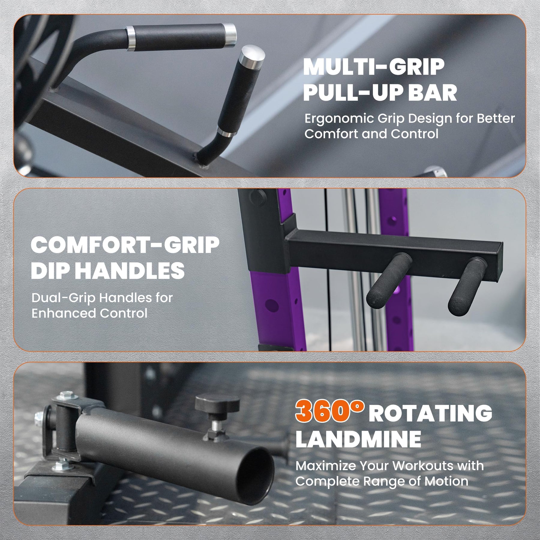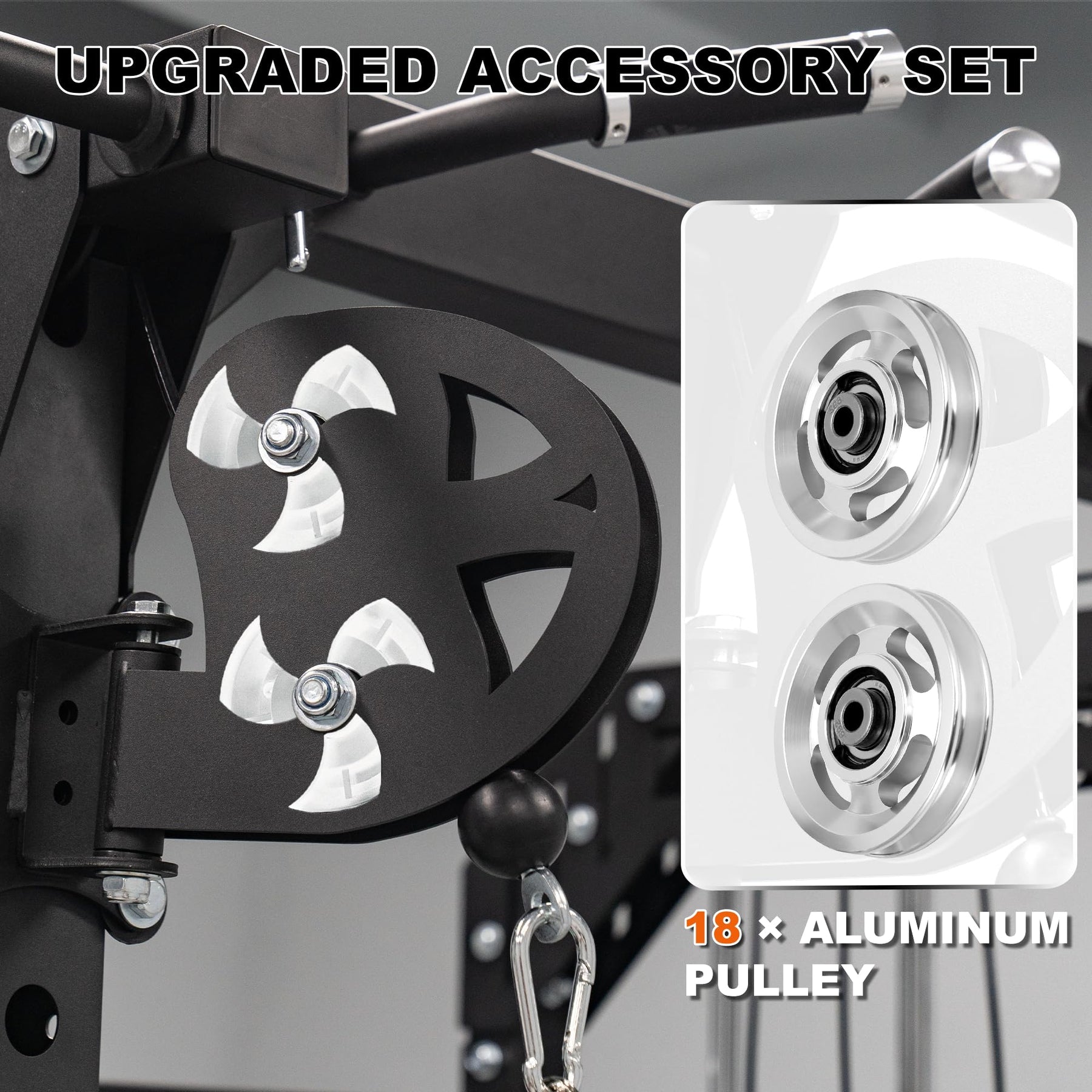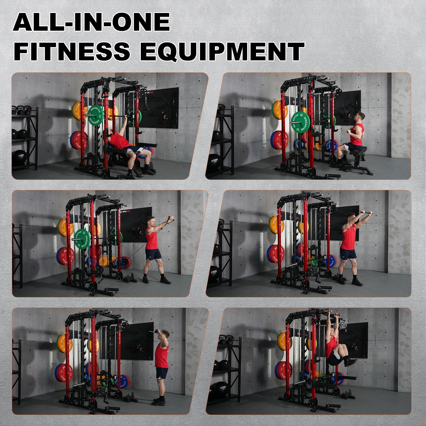 Smith Machine Home Gym with Aluminum Pulley Set- 2000lbs Capacity All-in-One Power Rack with Cable Crossover, Pull-Up Bar & Dip Station, Includes 18 Attachments, P107 Anvil