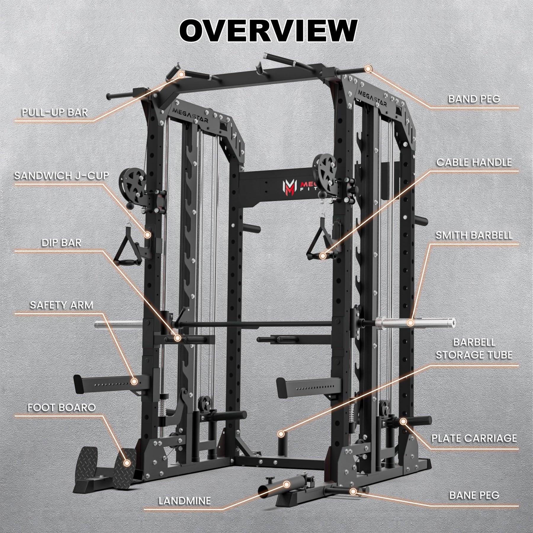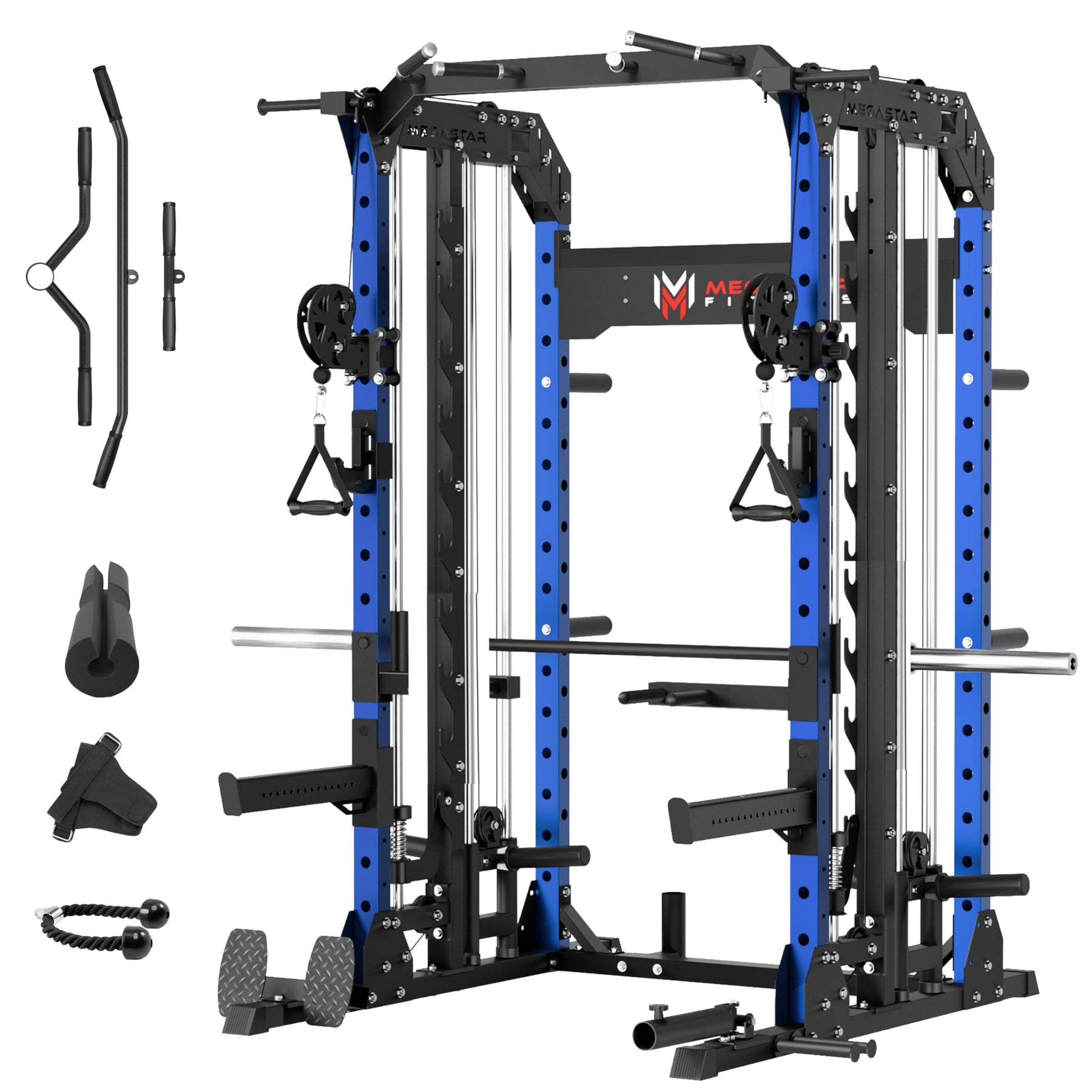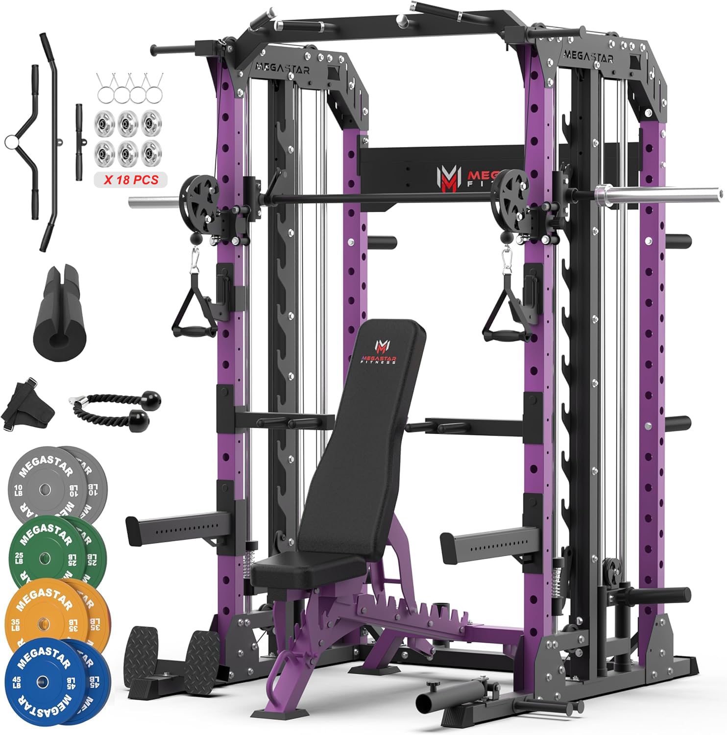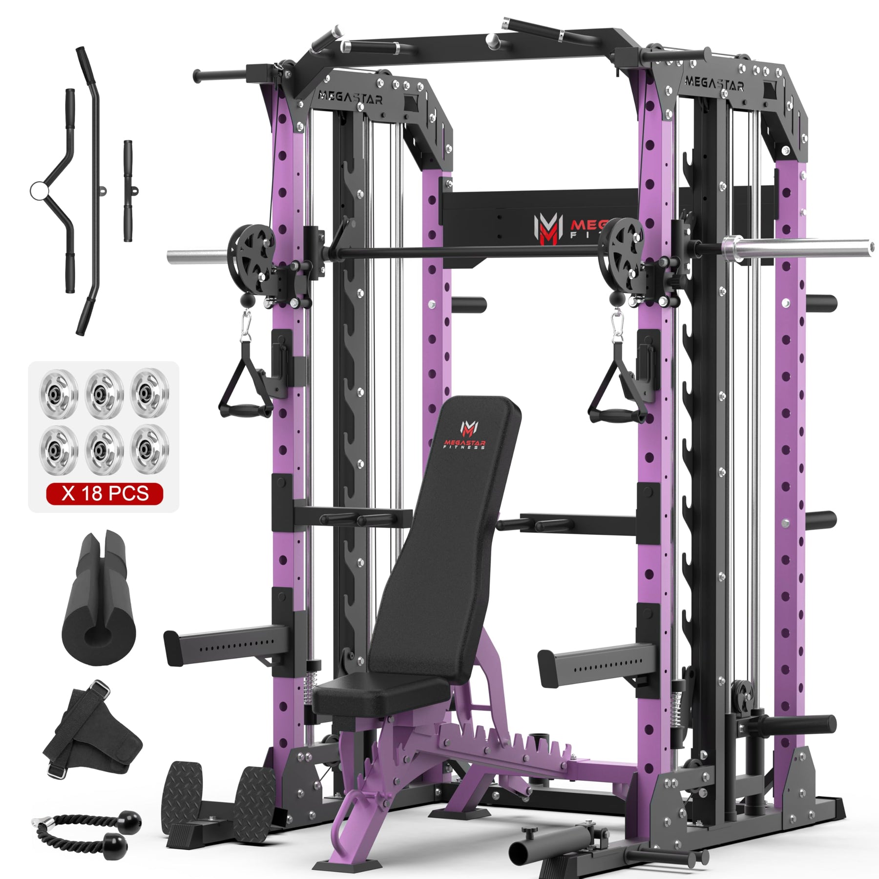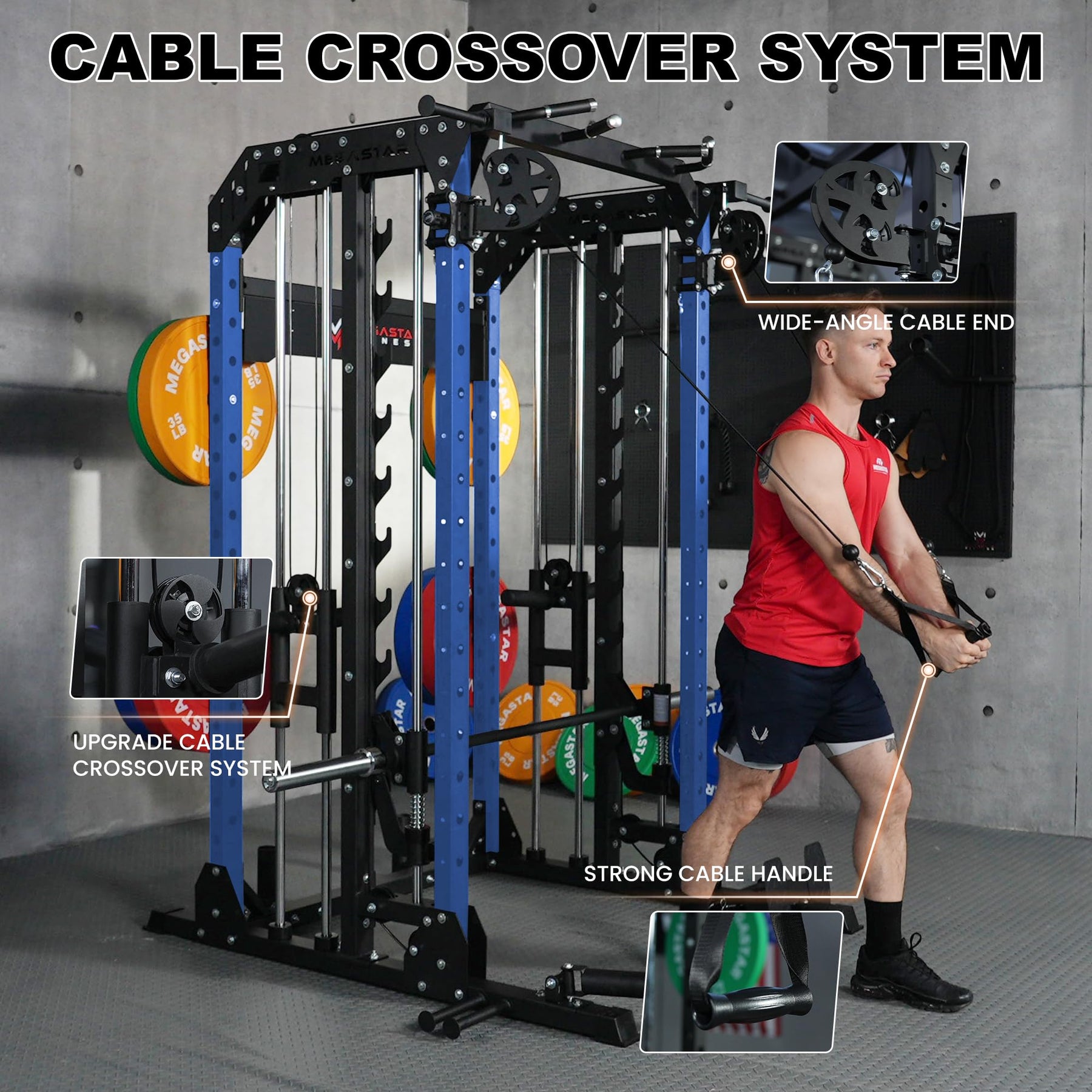 Smith Machine Home Gym with Aluminum Pulley Set- 2000lbs Capacity All-in-One Power Rack with Cable Crossover, Pull-Up Bar & Dip Station, Includes 18 Attachments, P107 Anvil